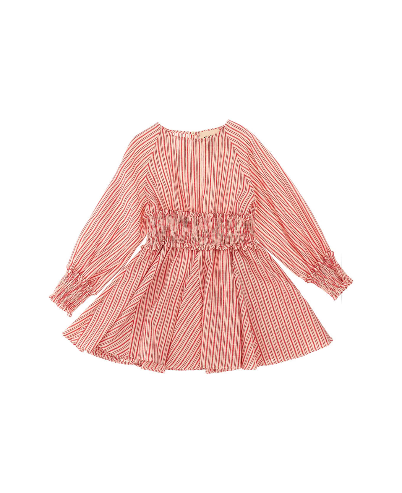 Striped linen blend dress, with smock stitch elastic waistband, a crewneck, long sleeves with elasticated cuffs.