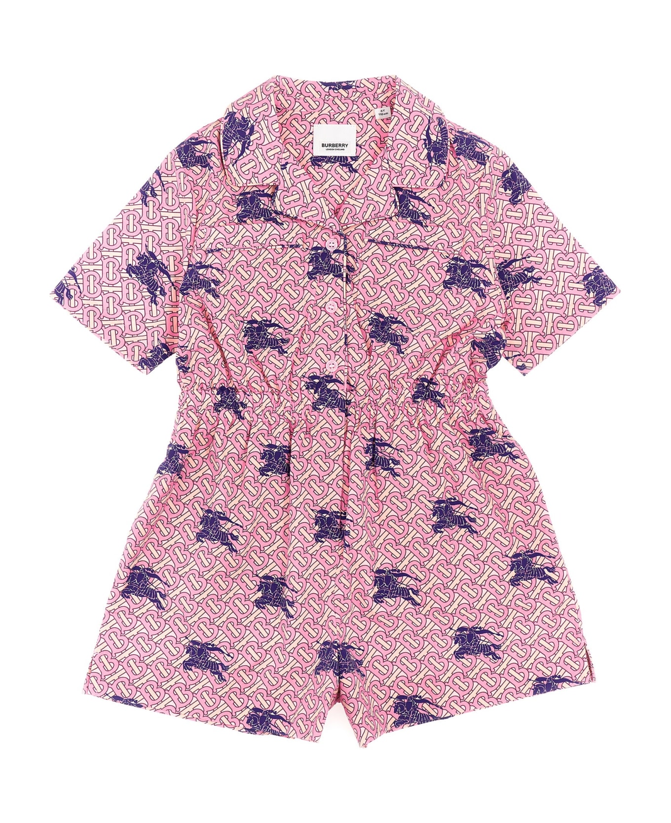 Meredith' cotton bodysuit with all-over logo pattern, front button closure, elastic waistband, pockets and short sleeves.