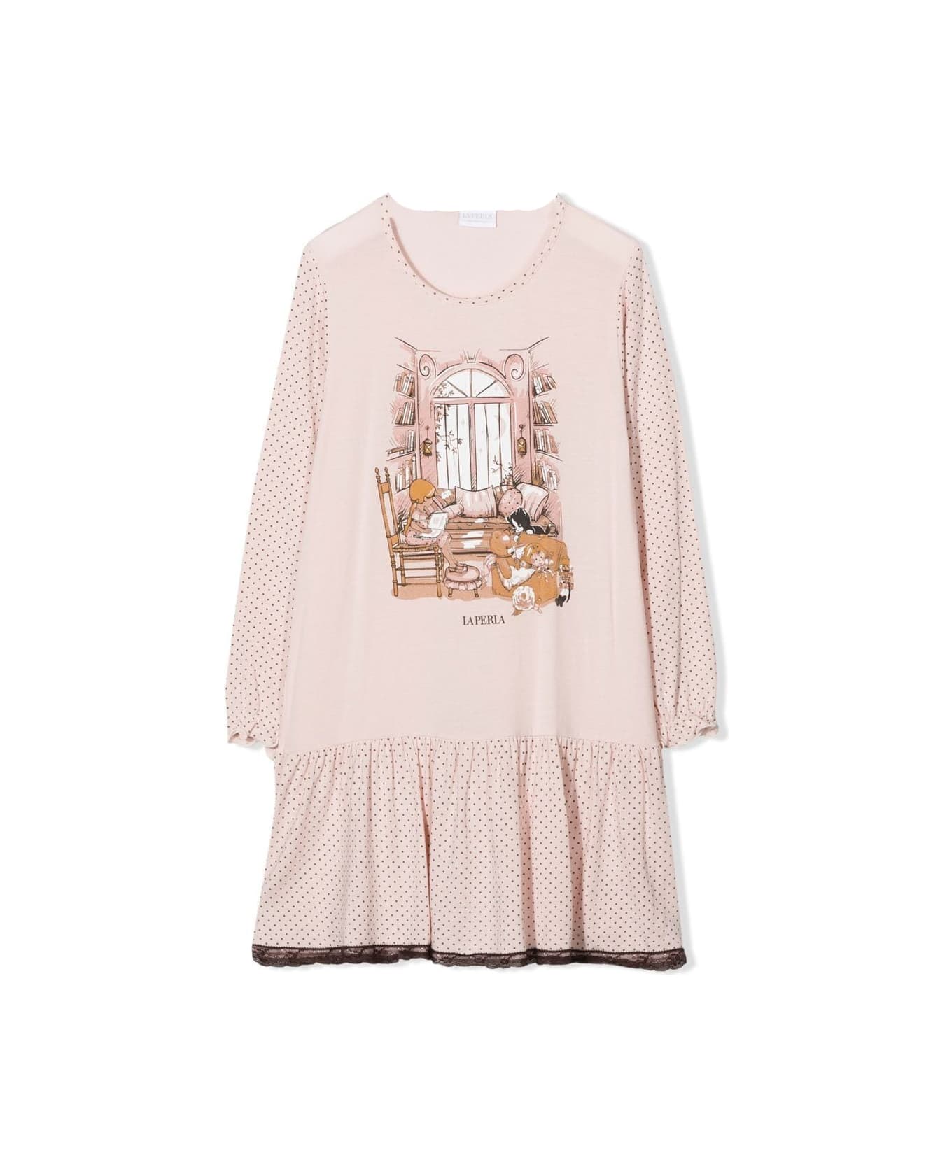 graphic-print pyjama dress from LA PERLA KIDS featuring pink, stretch-modal, graphic print to the front, polka dot print, lace trim, pleat detailing, round neck and long sleeves. Just a reminder that this piece must be tried on over your own garments.. Conscious: This item contains at least 50% low-impact materials, which are certified or widely recognised as having a lower environmental impact..