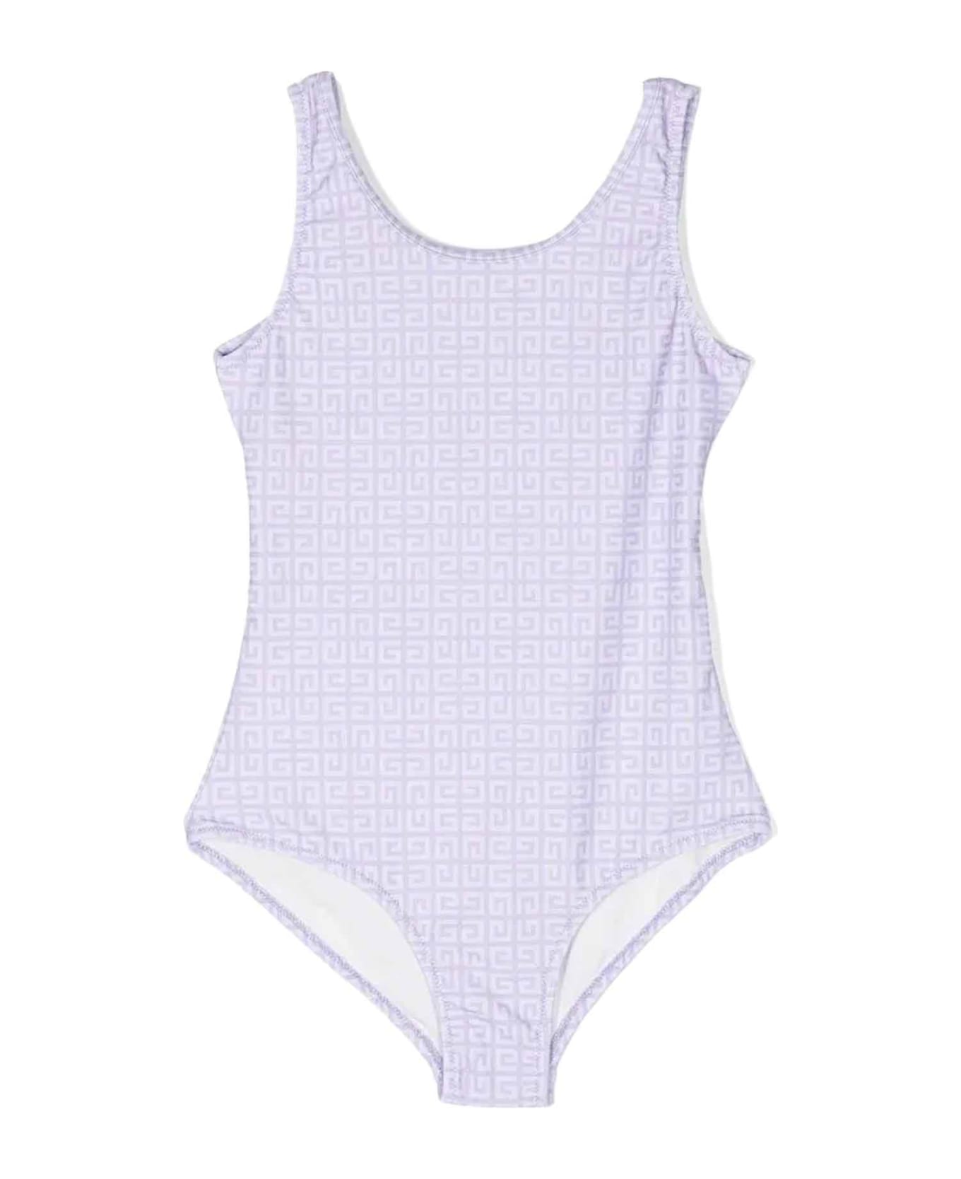 lilac swimsuit girl. Stretch design, all-over logo print, wide shoulder straps and cut-out detail. Polyamide 82%, Elastane 18%