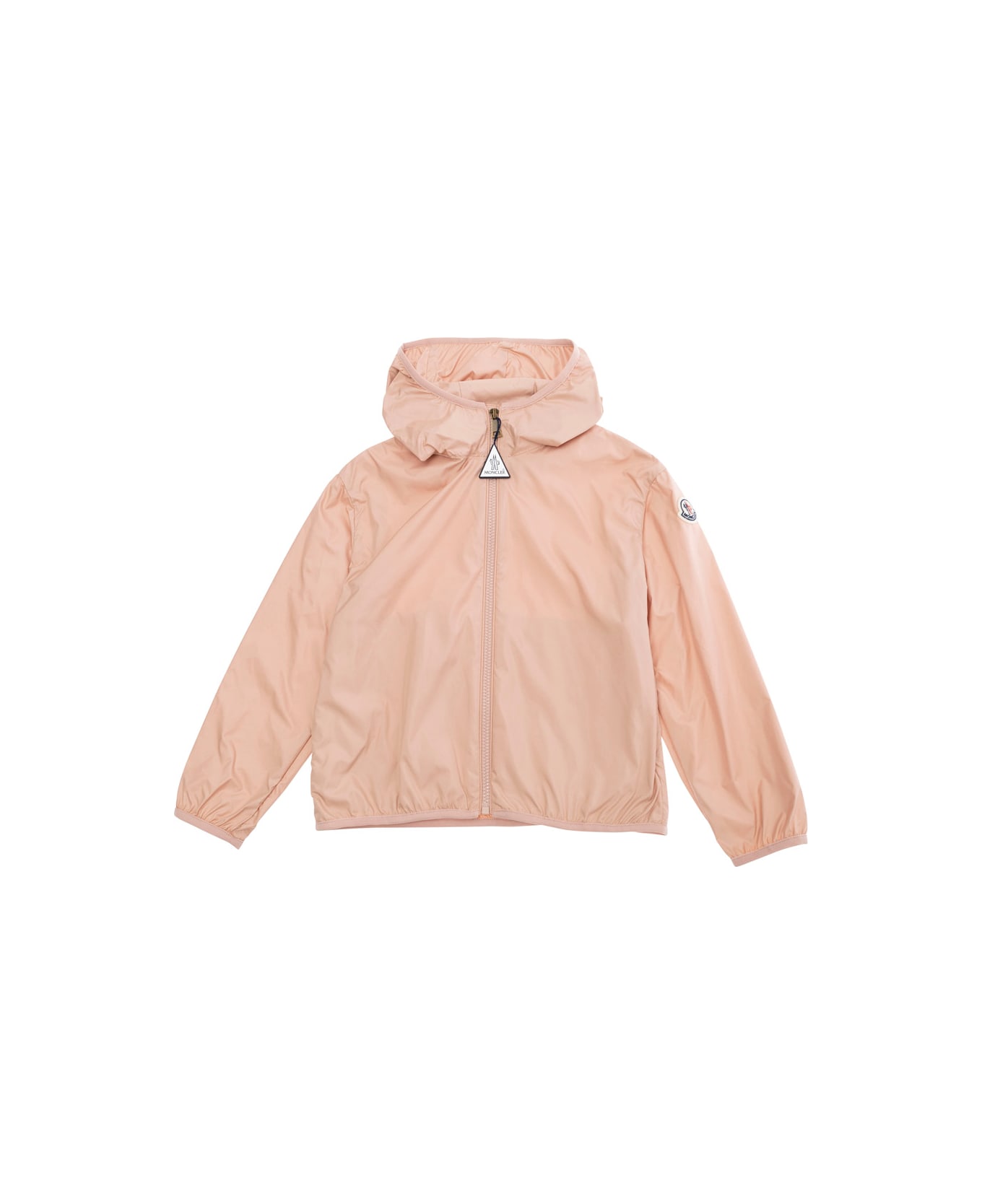 Jacket Pink Fixed hood Long sleeves Front zip closure Logo plaque on the zip puller Logo patch on the sleeve Elastic trims Tech fabric Regular fit