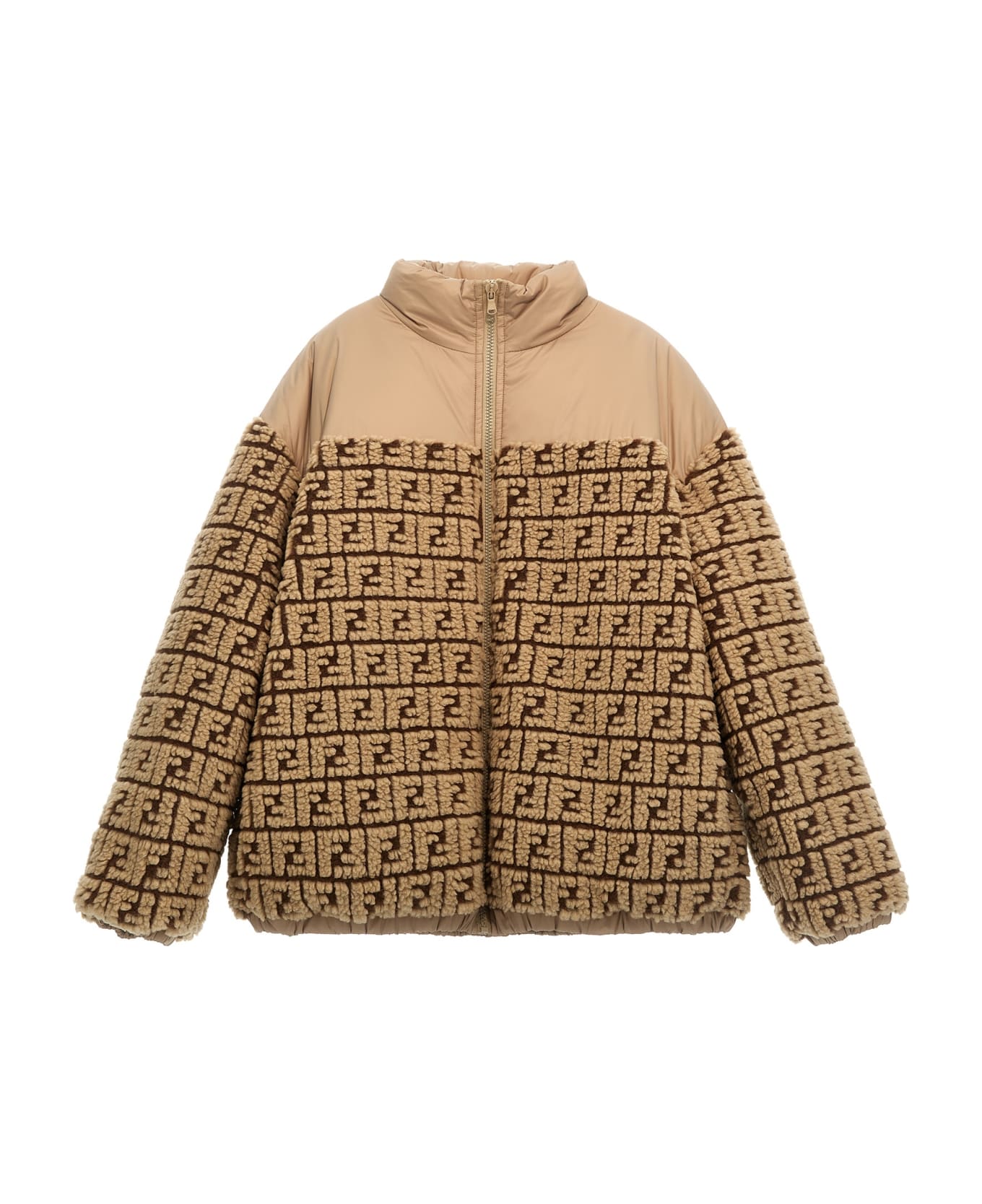 Reversible nylon and teddy-effect fabric down jacket, 'FF' logo pattern, zip closure, pockets, long sleeves. Composition: 100% polyamide