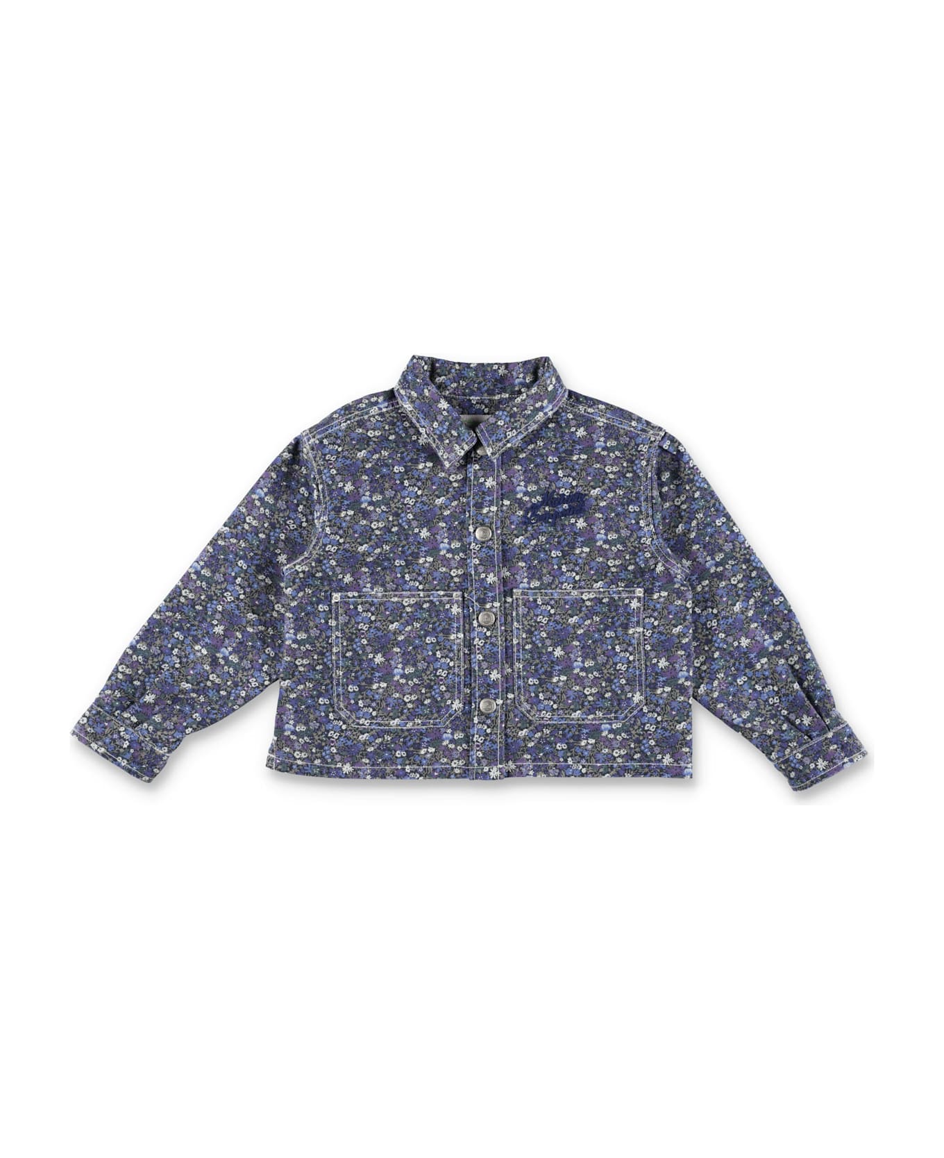 Cotton Eliza Embroidered Jacket By Bonpoint. Featuring: Spread Collar Fastens With Engraved Bonpoint Buttons Logo Embroidery On The Chest. Front Patch Pocket Contrast Stitching Floral Motif Print All-over