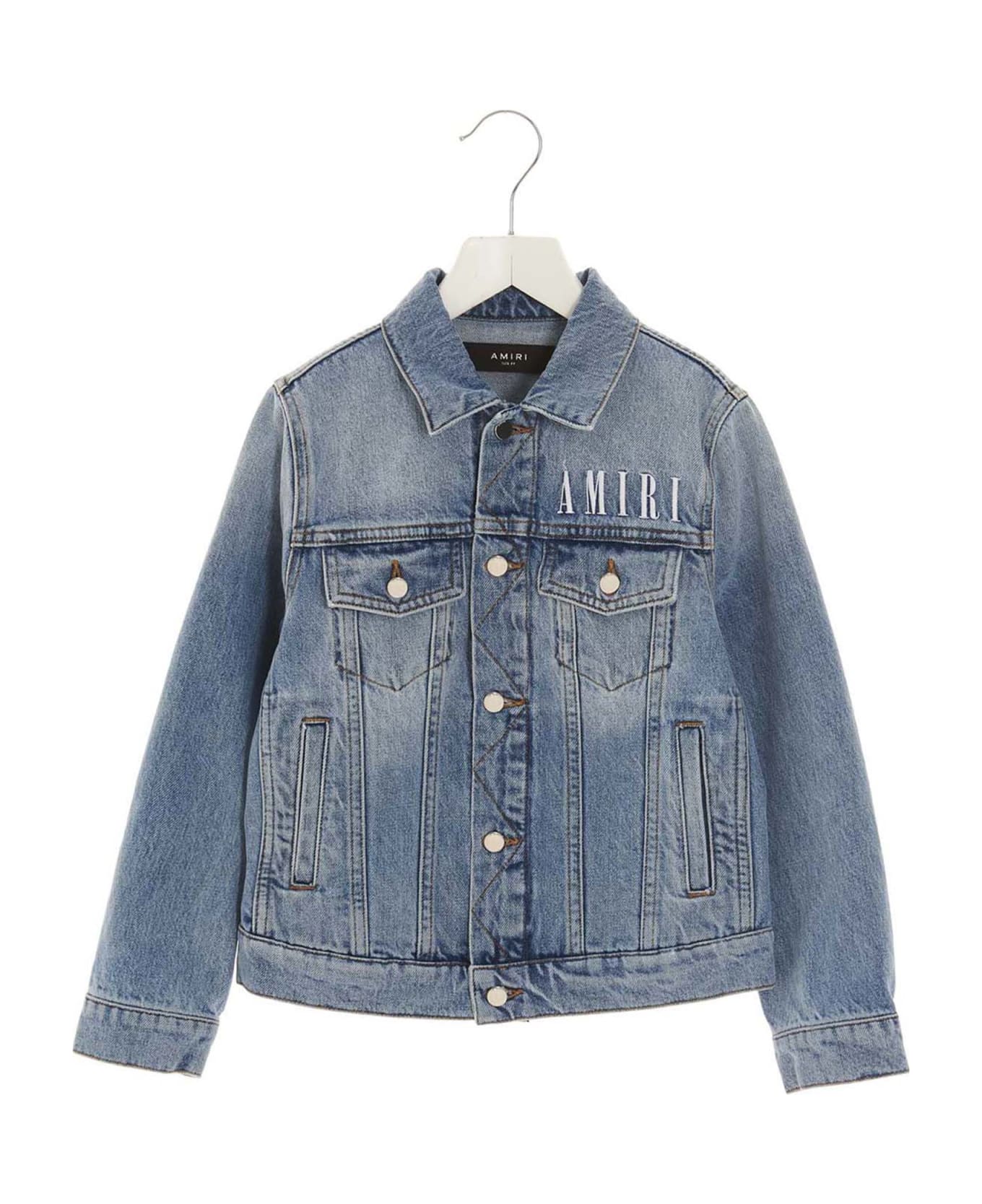 Cotton denim jacket with logo embroidery at the front and back, button closure, pockets, long cuffed sleeves.