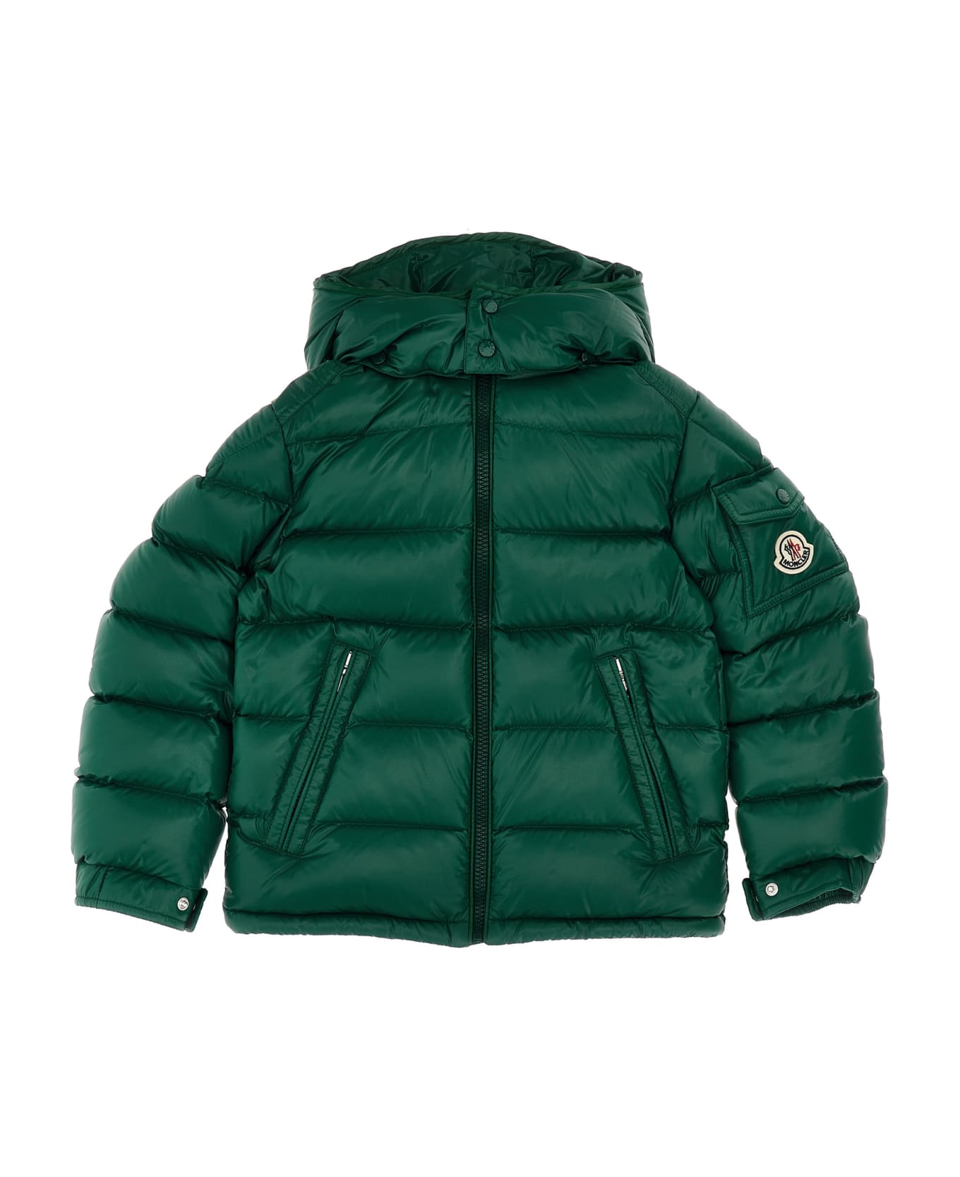Moncler New Maya En here' laqué jacket with laqué lining, down padding and boudin quilting, removable hood, zip closure and pockets.