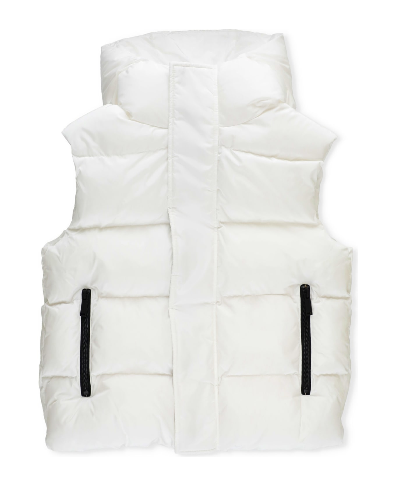 Padded And Quilted Vest With Logo from Dsquared2: - White DSQUARED2 vest for boy - High neck - Hood - Front zip and velcro fastening - Two side zip pockets - Rear contrasting colour logo at hem
