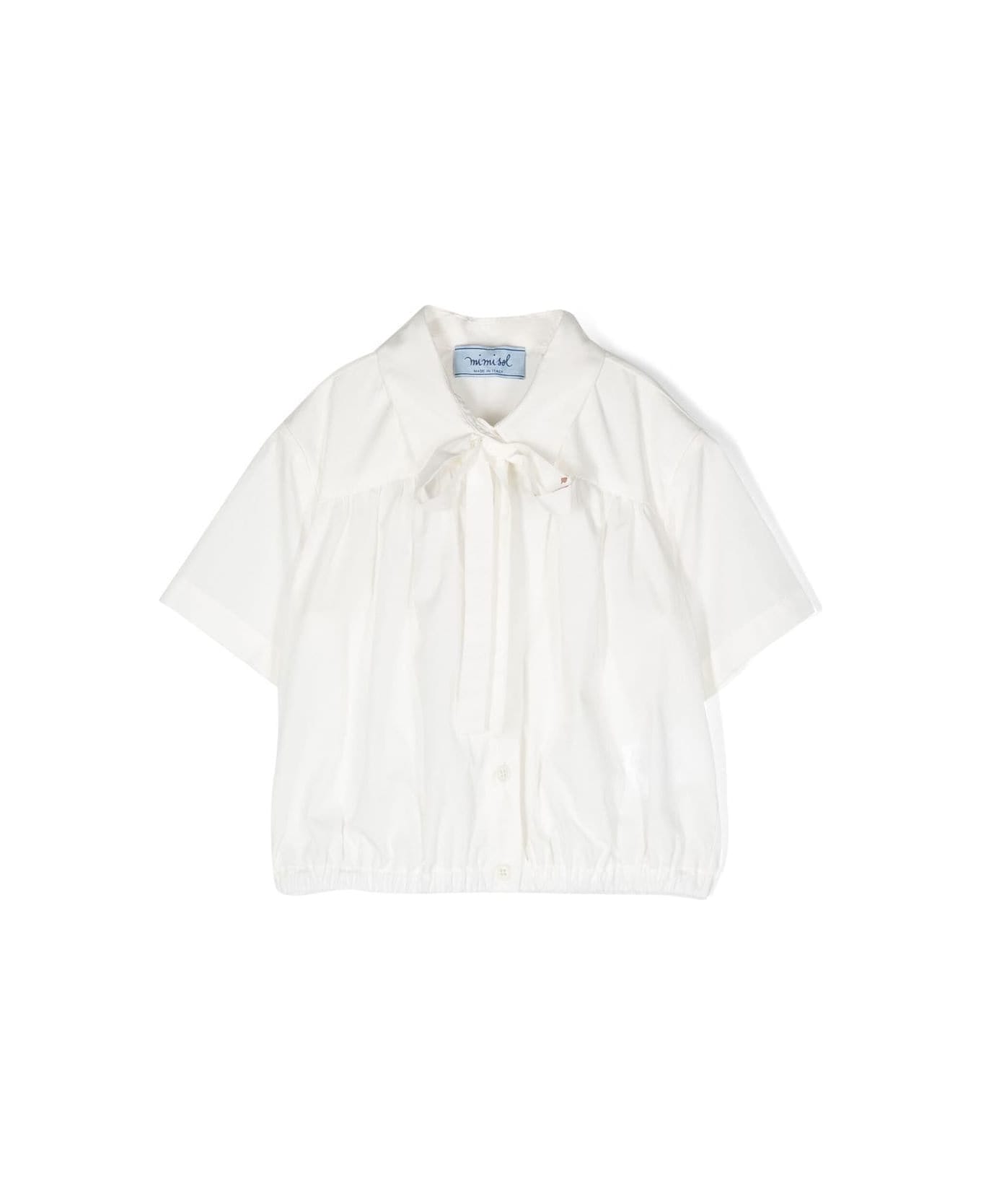 Camicia maniche corte con colletto classico, chiusura frontale con bottoni e fiocco e orlo elasticizzato. Cotone 100% - Lavare in lavatrice