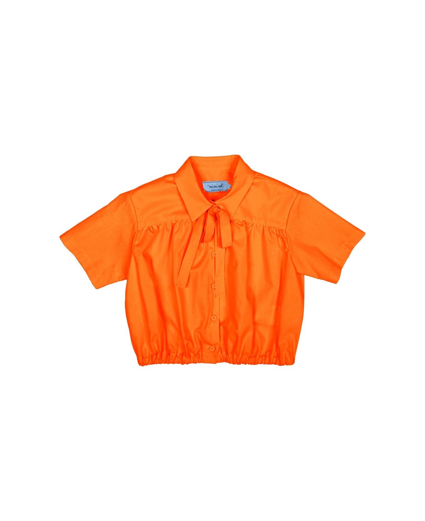 Orange, classic collar, flare design, front bow tie closure and short sleeves. Origin: Italy Composition Cotton 97%, Spandex/Elastane 3%