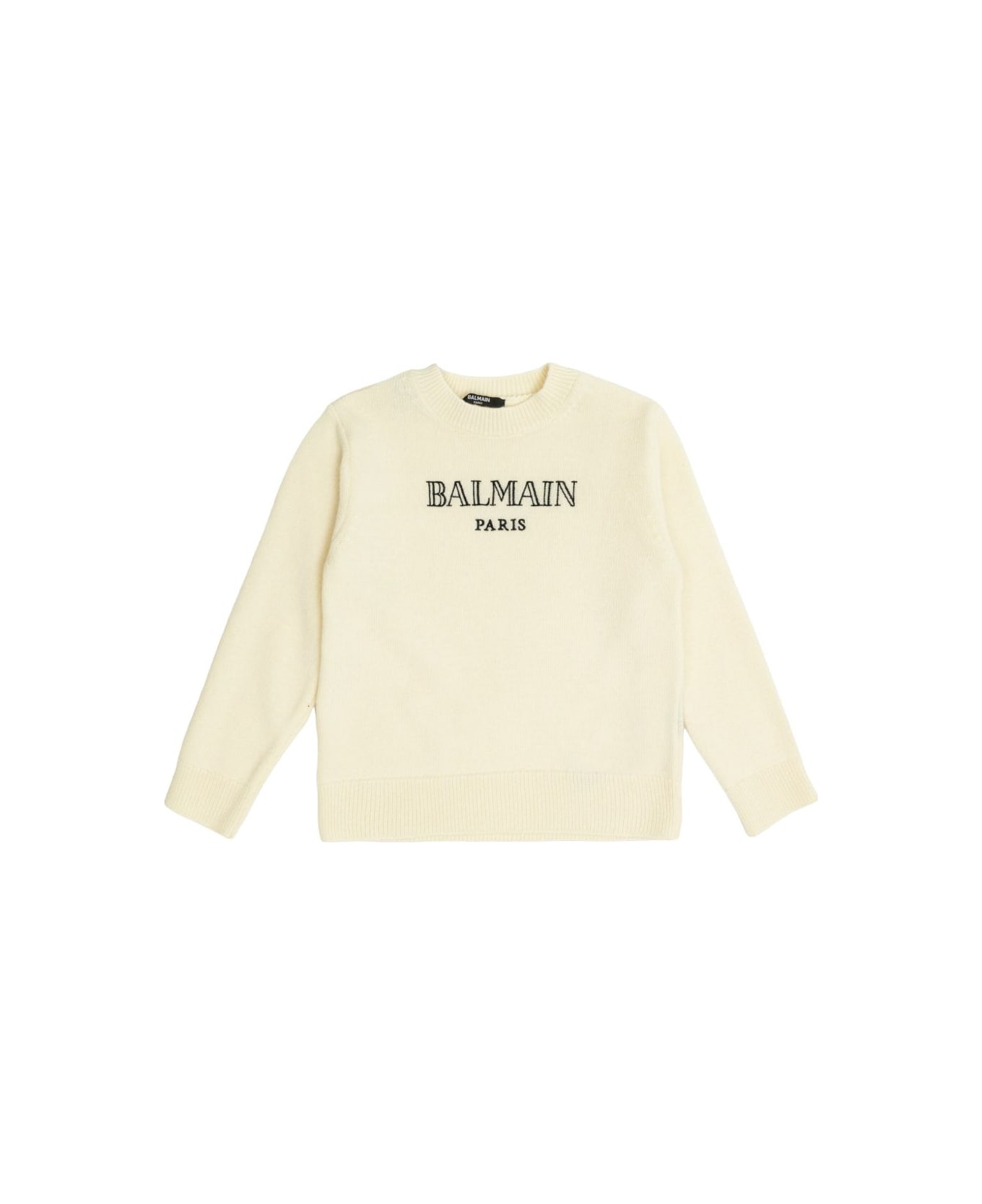 Our team selected this model for its high stylistic content and eco-sustainability. Balmain Kids Embroidered Sweater Features Beige Crewneck Embroidered logo Ribbed hem and cuffs Long sleeves Composition 90% wool, 10% cashmere Composition: 90% Wool, 10% Cashmere