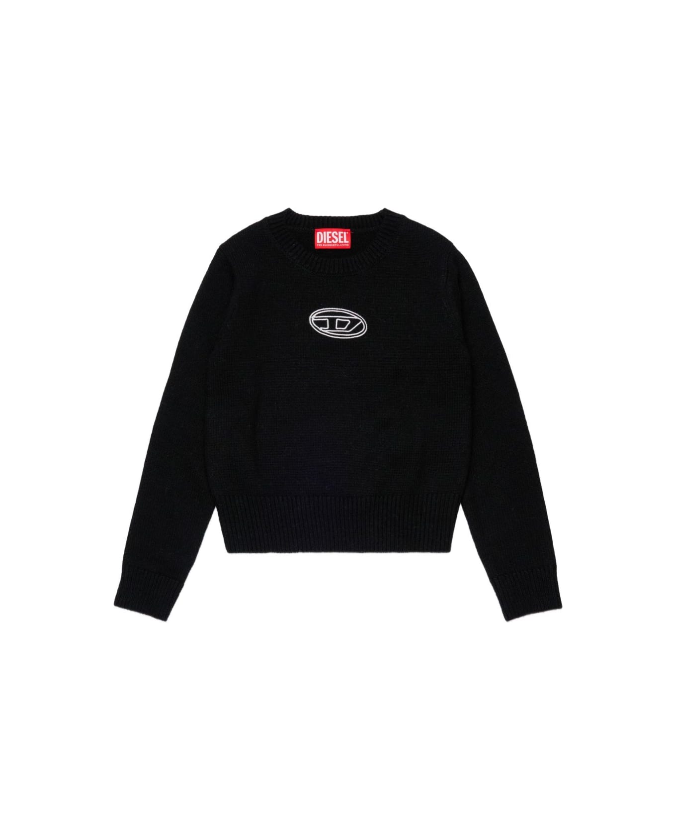Diesel Kids Klessy Sweater Features Black Embroidered logo on the front Round neck Long sleeves Composition 48% polyamide, 27% viscose, 20% wool, 5% cashmere Composition: 48% Polyamide, 27% Viscose, 20% Wool, 5% Cashmere