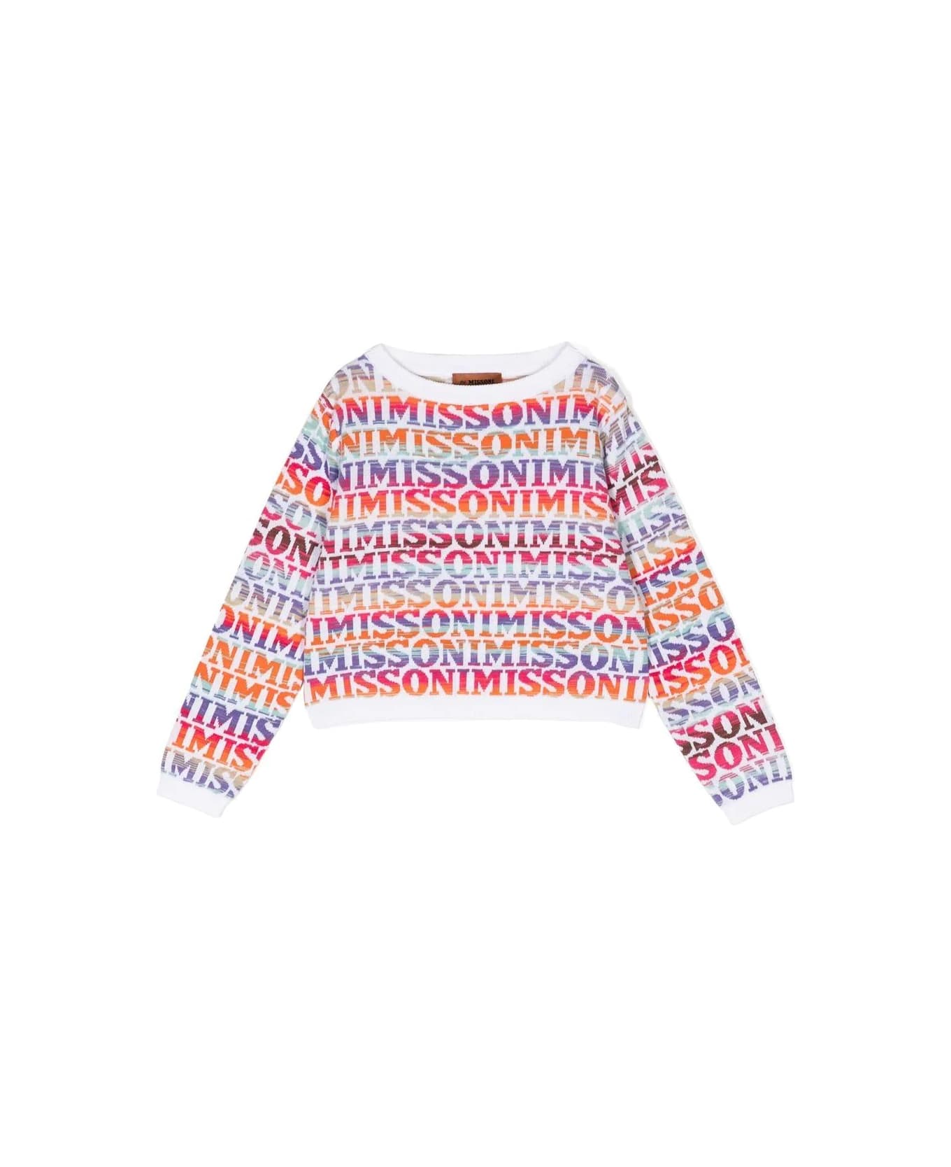 Missoni Kids crew-neck pullover in multicoloured jacquard cotton knit with all-over logo.