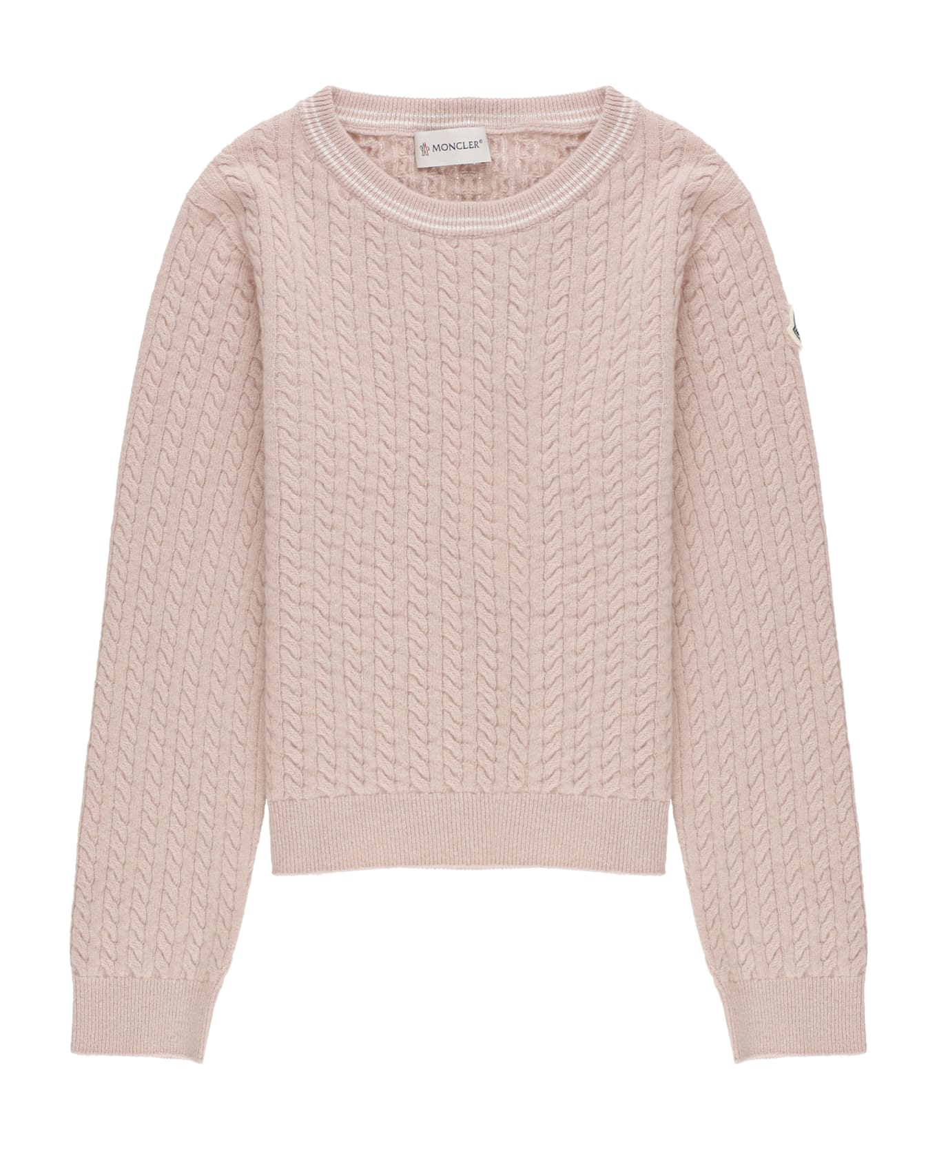 - Pink Moncler Enfant virgin wool sweater for girl - Crew neck - Long sleeves - Elastic ribbed trims