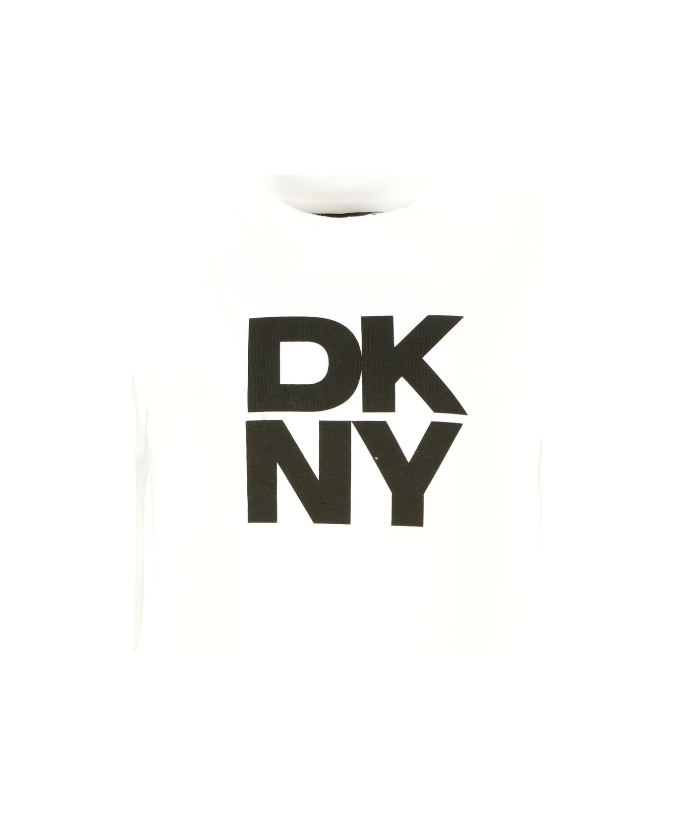 White cotton T-shirt with long sleeves, crew neck and ribbed hem. It is embellished with black logo on the front.
