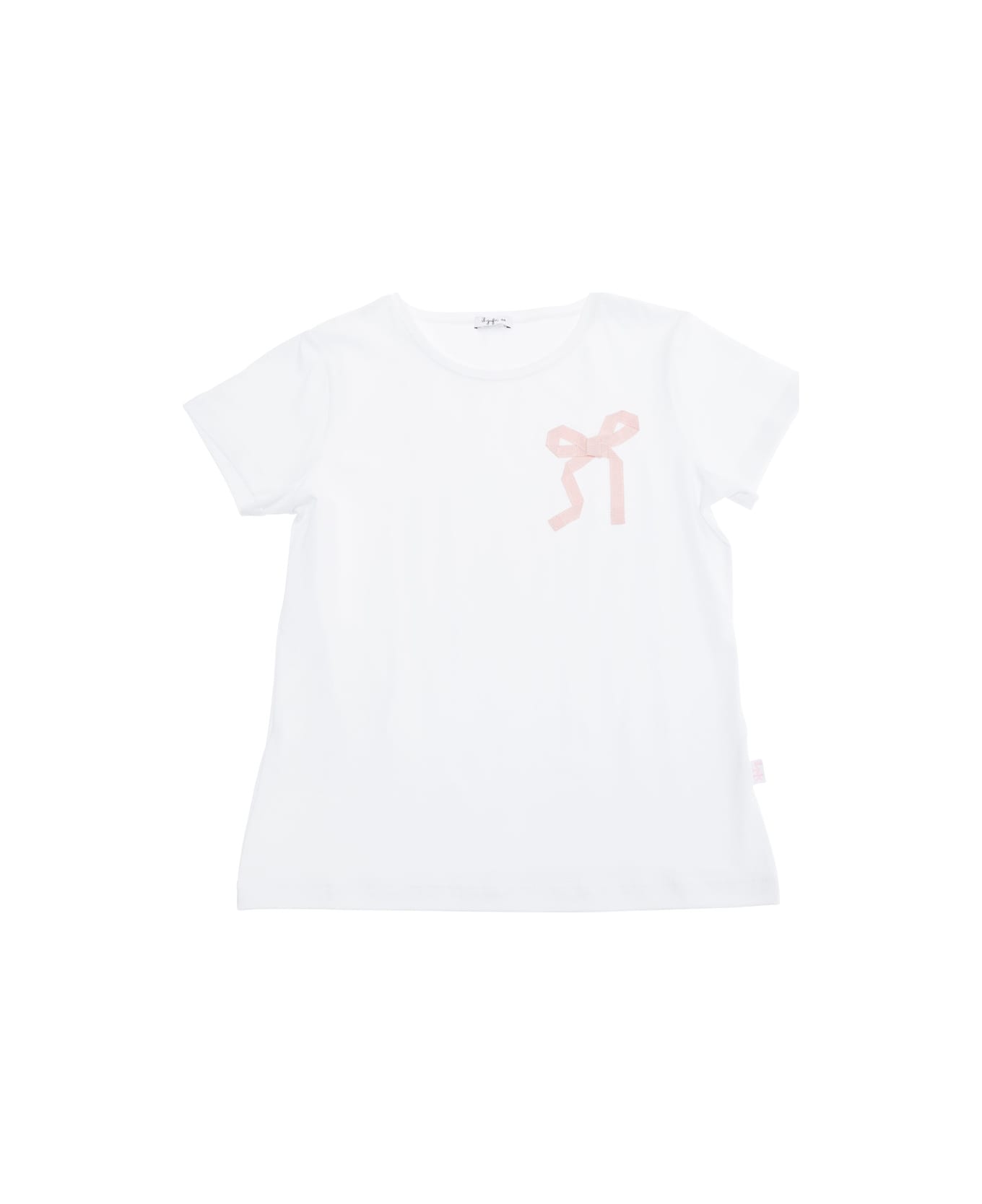 White T-shirt With Round Neck And Bow Detail On The Front In Cotton Girl
