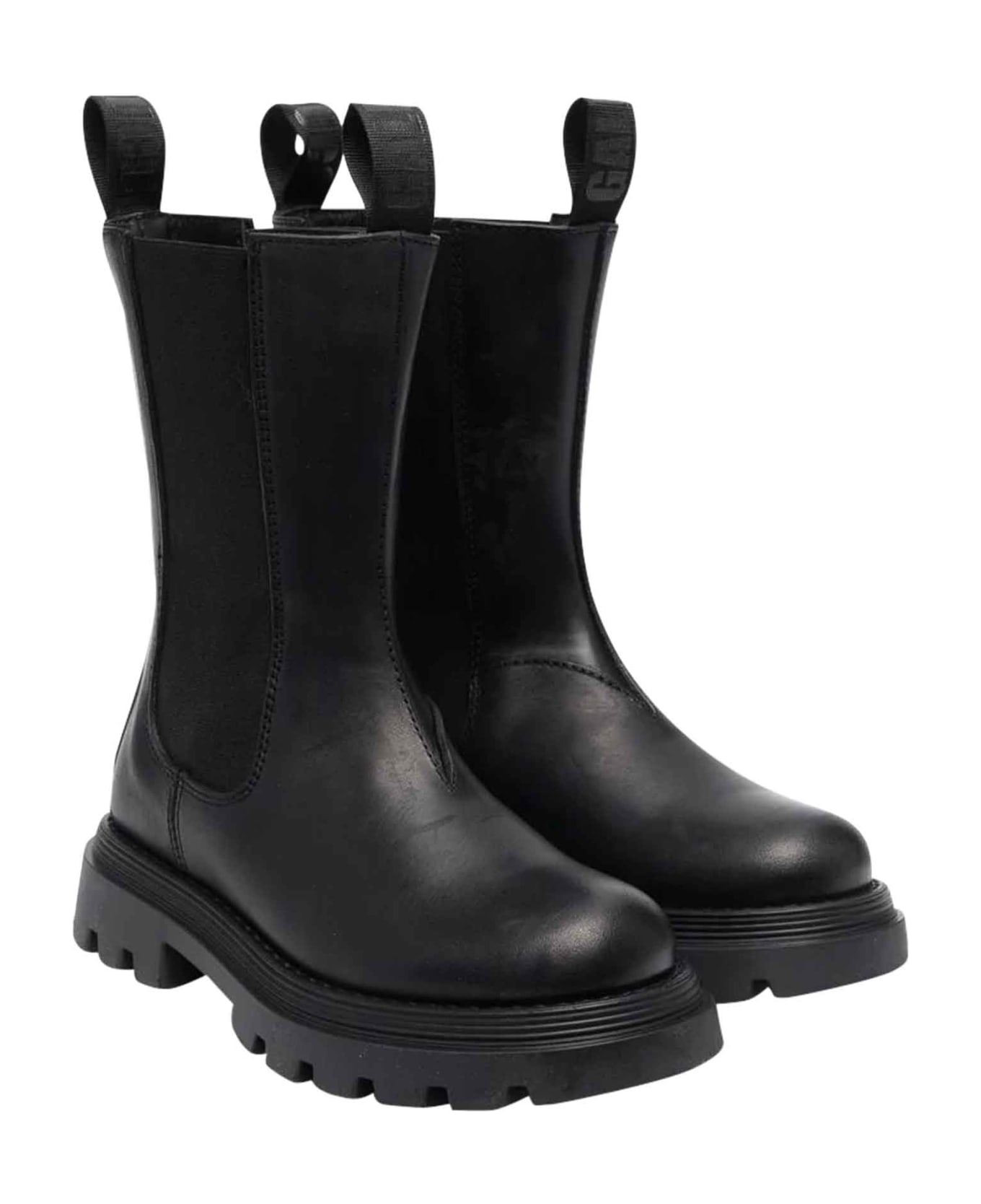 Black boots girl Boss Kids. Round toe, side elastic panels, double tongue closure and chunky rubber sole. 100% Rubber sole