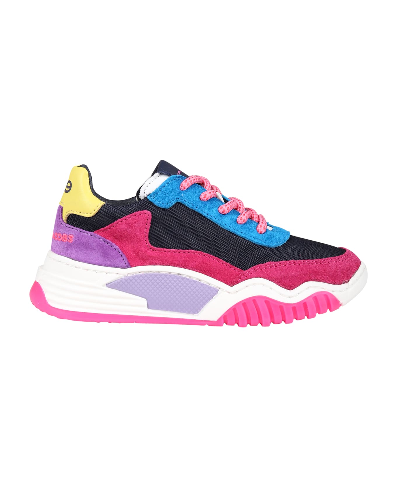 Blue sneakers in fabric, with rubber sole, lace-up closure, round toe. They are embellished with multicolor details in suede and with an embroidered logo on the heel.