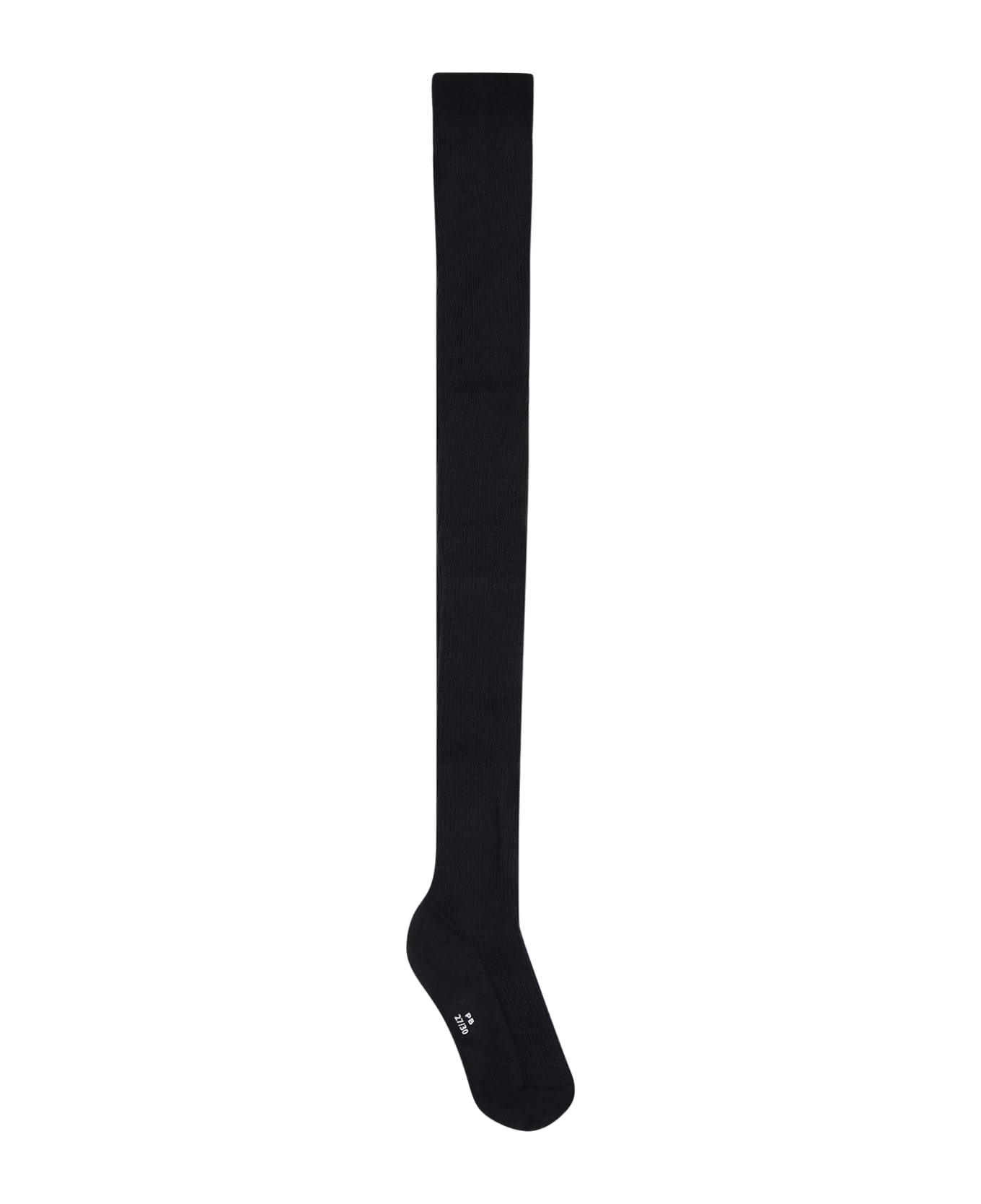 Blue ribbed tights in wool blend, with elasticated waist. They are embellished with logo on the bottom.