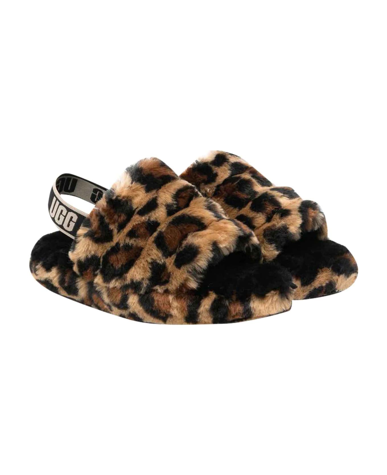 brown shoes unisex. Brushed effect, leopard print, no opening design, elasticated heel band, peep toe and flat rubber sole. Shearling 100%