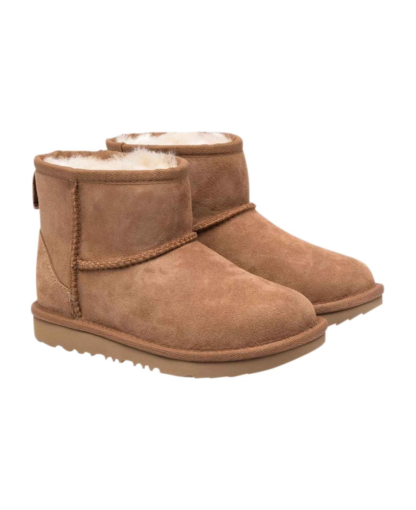 Camel boots unisex. Model with round toe, slip-on design, Shearling lining, ankle height and flat rubber sole. 100% Rubber sole