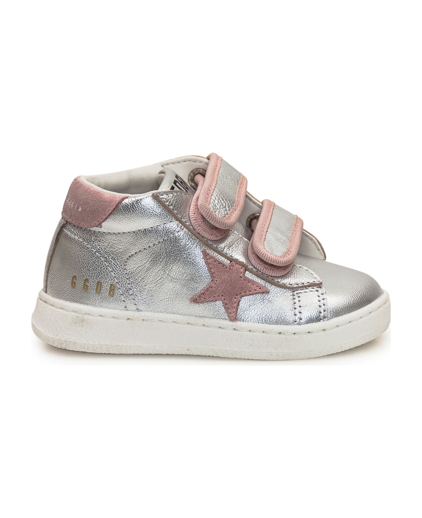 High sneaker. Closure with rips. Contrasting inserts with logo. Silver color.