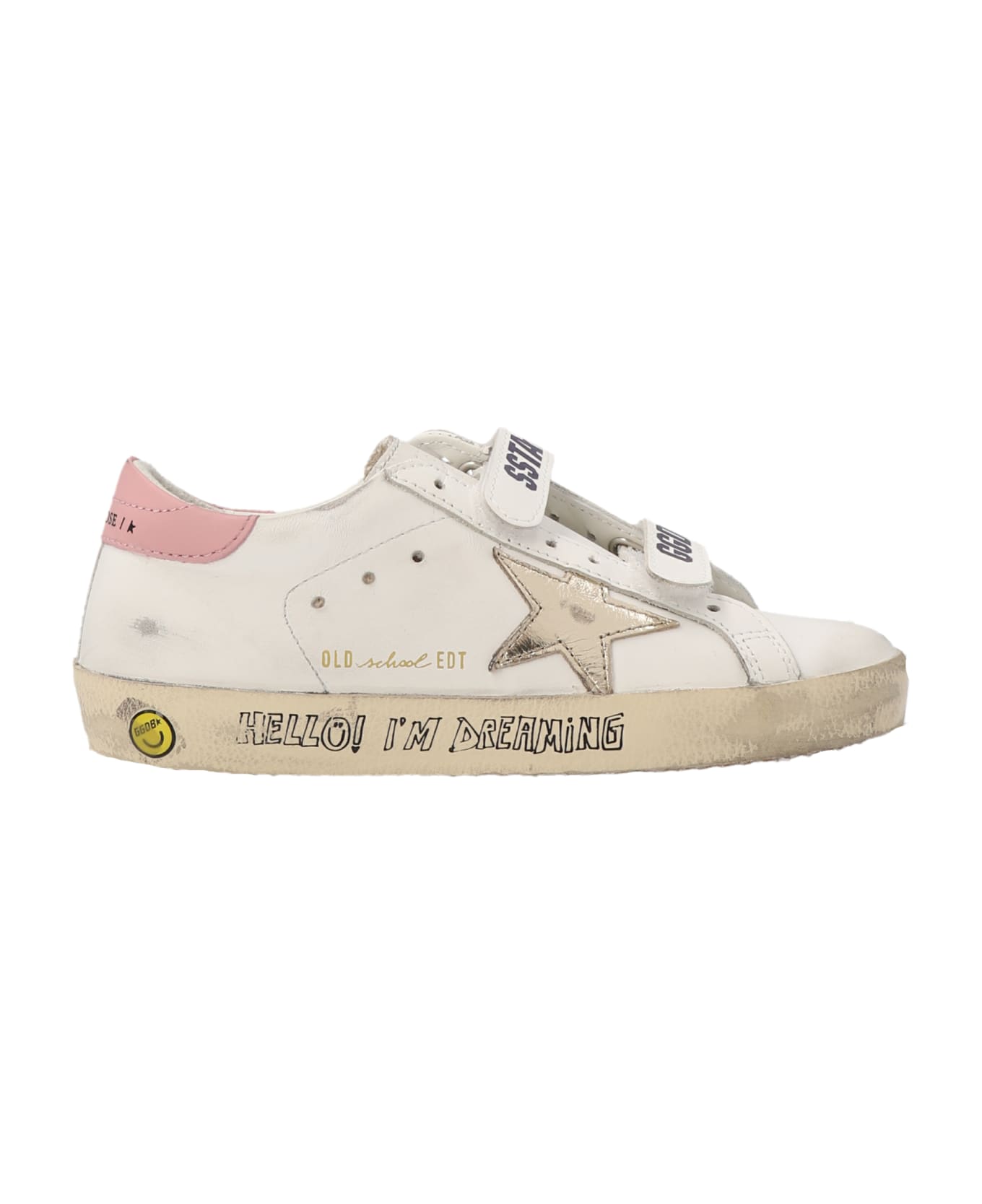 Old School' leather sneakers with used-effect detail, contrast leather star on the side and heel tab, velcro strap closure, logo print and a rubber sole.