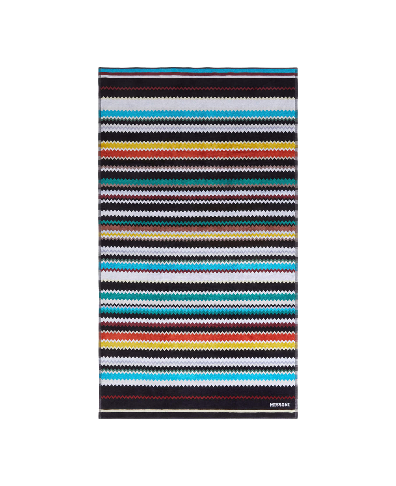 Beach towel Multicolor Rectangular design Logo lettering on the front All-over ZigZag motif Cotton Dimensions: 100x180 cm