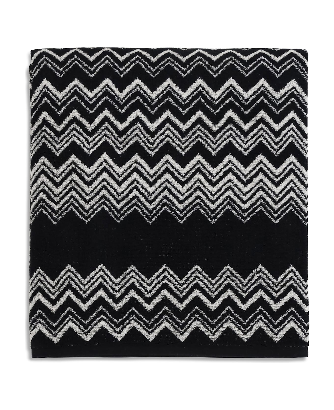 Jazz bath set by missoni includes two towels made of soft velour cotton terry, perfect for combining comfort and style. featuring a vibrant striped pattern and finished with jacquard profiles that are also striped, they represent the brand's distinctive elegance, ideal for enriching the bathroom environment with color and personality.