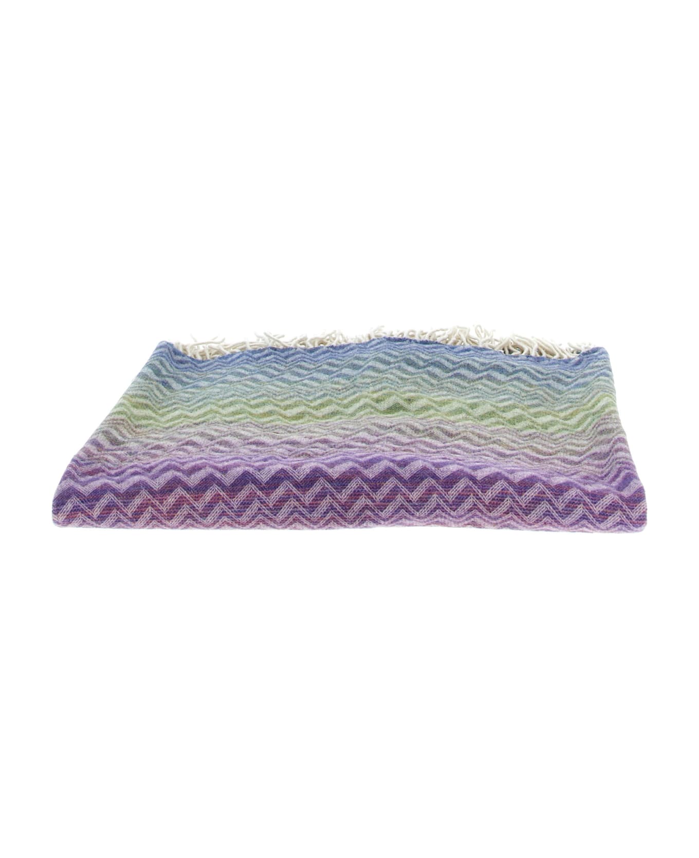 'Bastien' plais in wool blend with zigzag pattern, fringed edges.