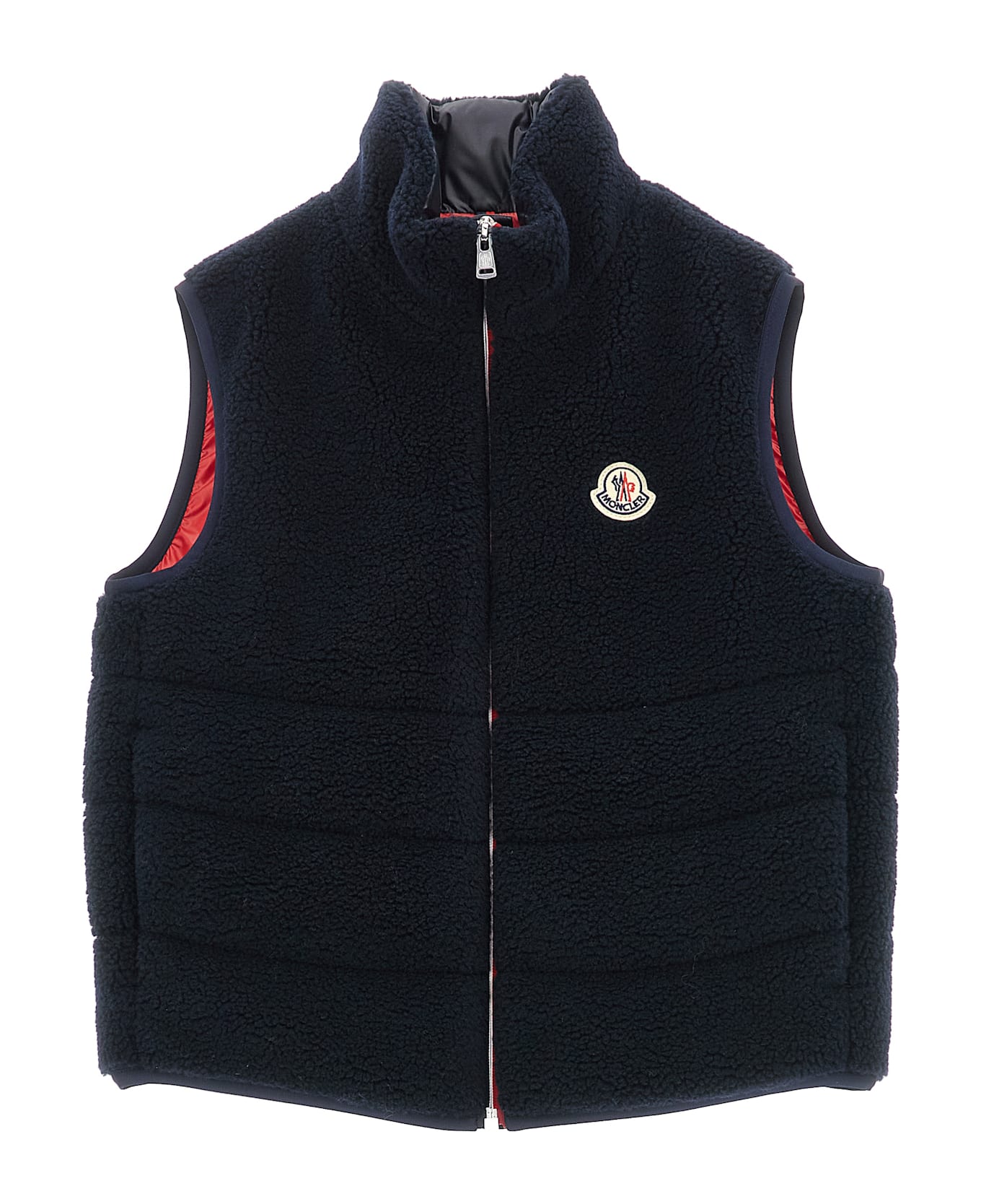 KIDS 'Orin' vest in teddy fabric with goose feather padding, contrast synthetic fabric lining, felt logo patch and front zip closure, standing collar, pockets.