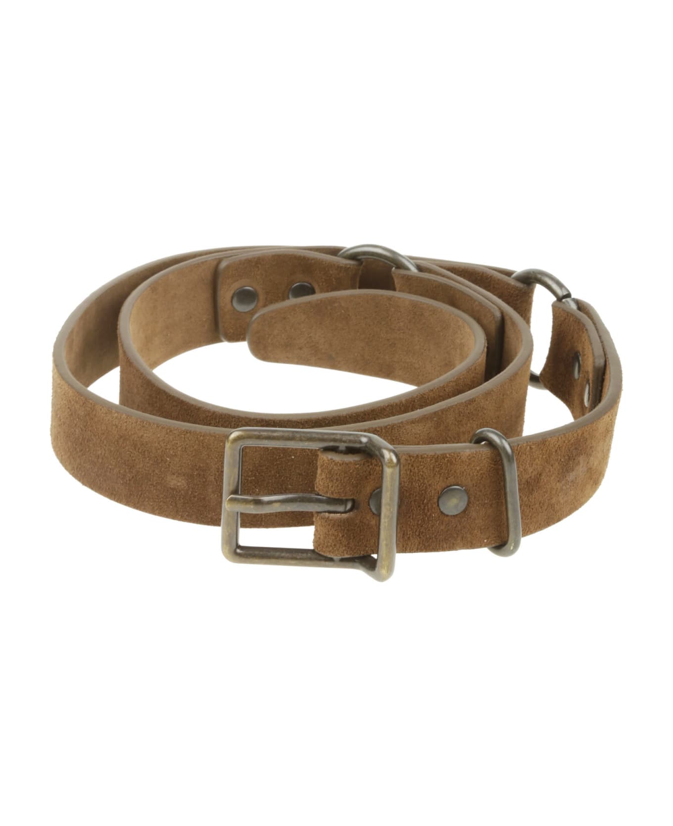 Massimo Alba Beige suede leather belt, metal buckle, metal studs.