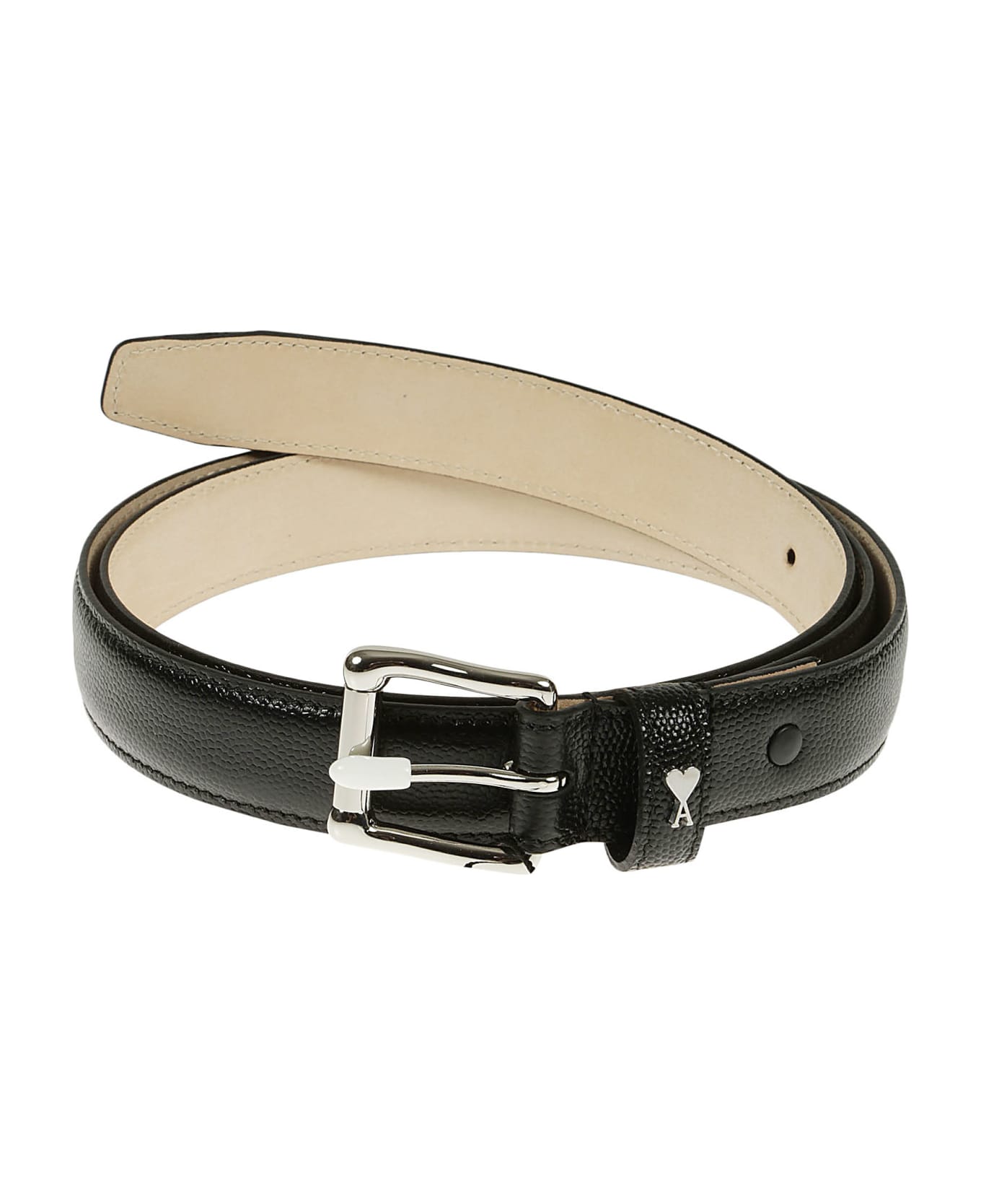 Ami Paris belt made of calf leather with silver buckle and logo detail on the belt loop. Composition: 100% Calf Leather
