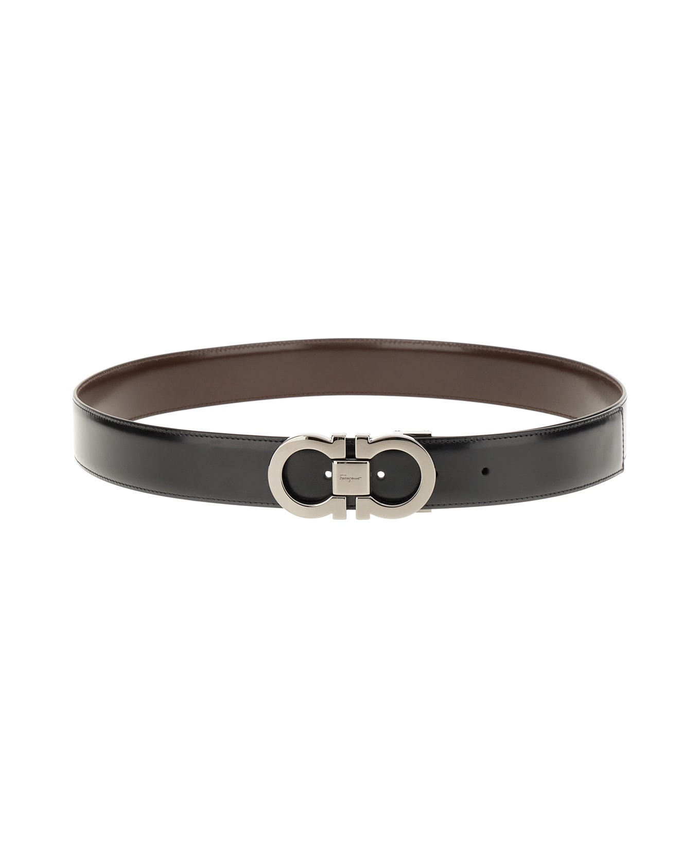 Reversible belt realized in pebble calf leather enriched by metal Gancini detail. -Adjustable snap-fit closure Composition: Exterior: 100% Calf Finishing: Gunmetal