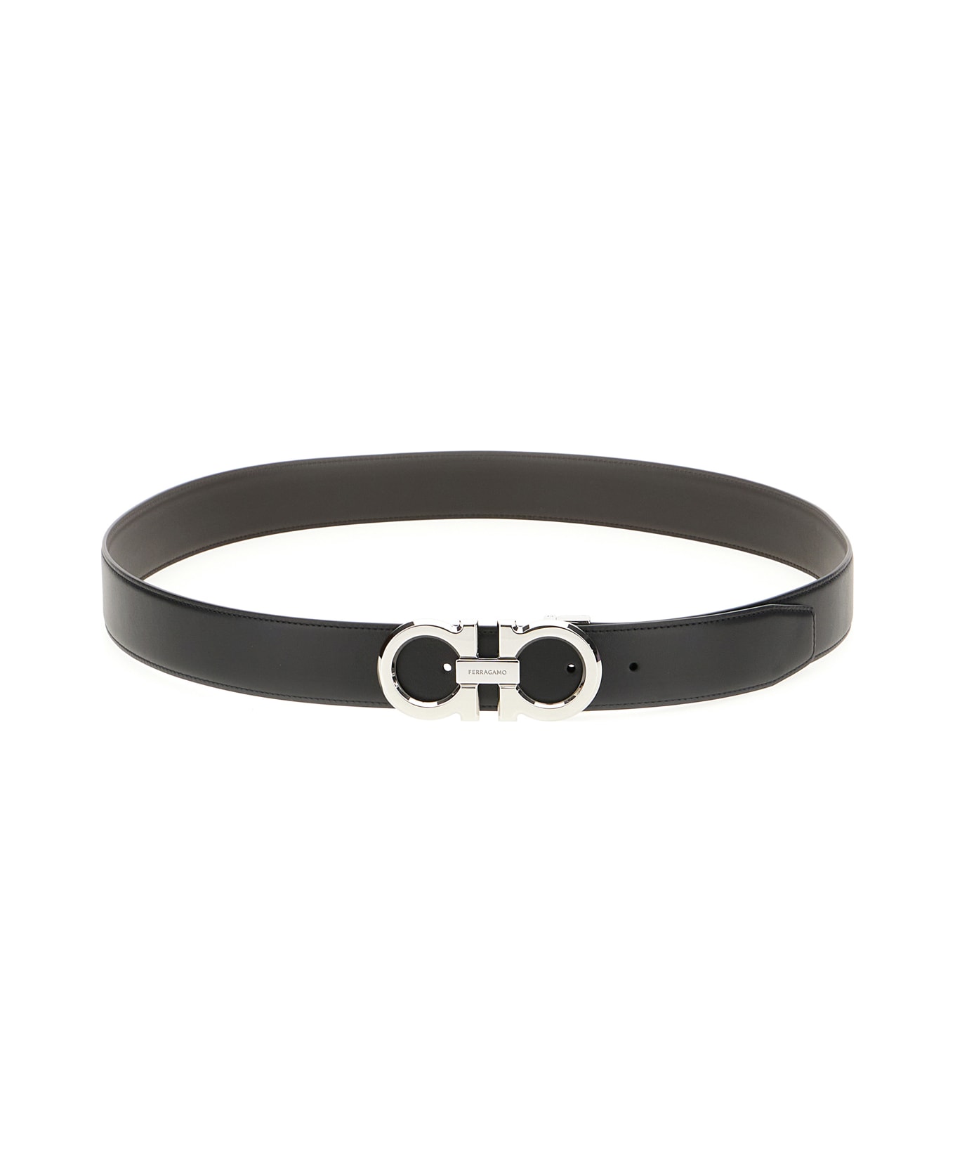 Reversible belt realized in smooth calf leather enriched by metal Gancini detail on the closure. -Adjustable snap-fit closure -Contrasting interior Composition: Exterior: 100% Calf Finishing: Silver