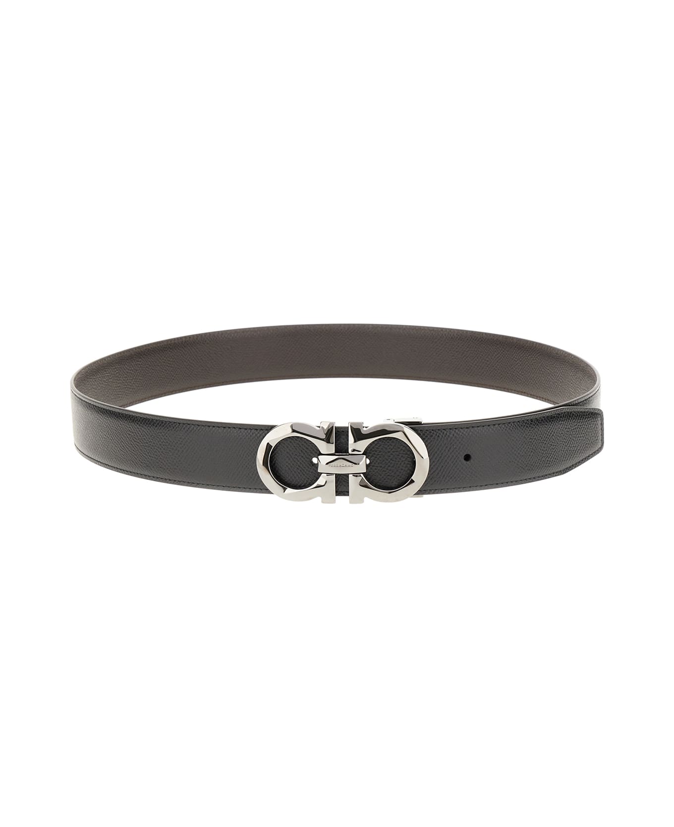 Reversible belt realized in smooth calf leather enriched by metal Gancini detail. -Adjustable snap-fit closure Composition: 100%CALF