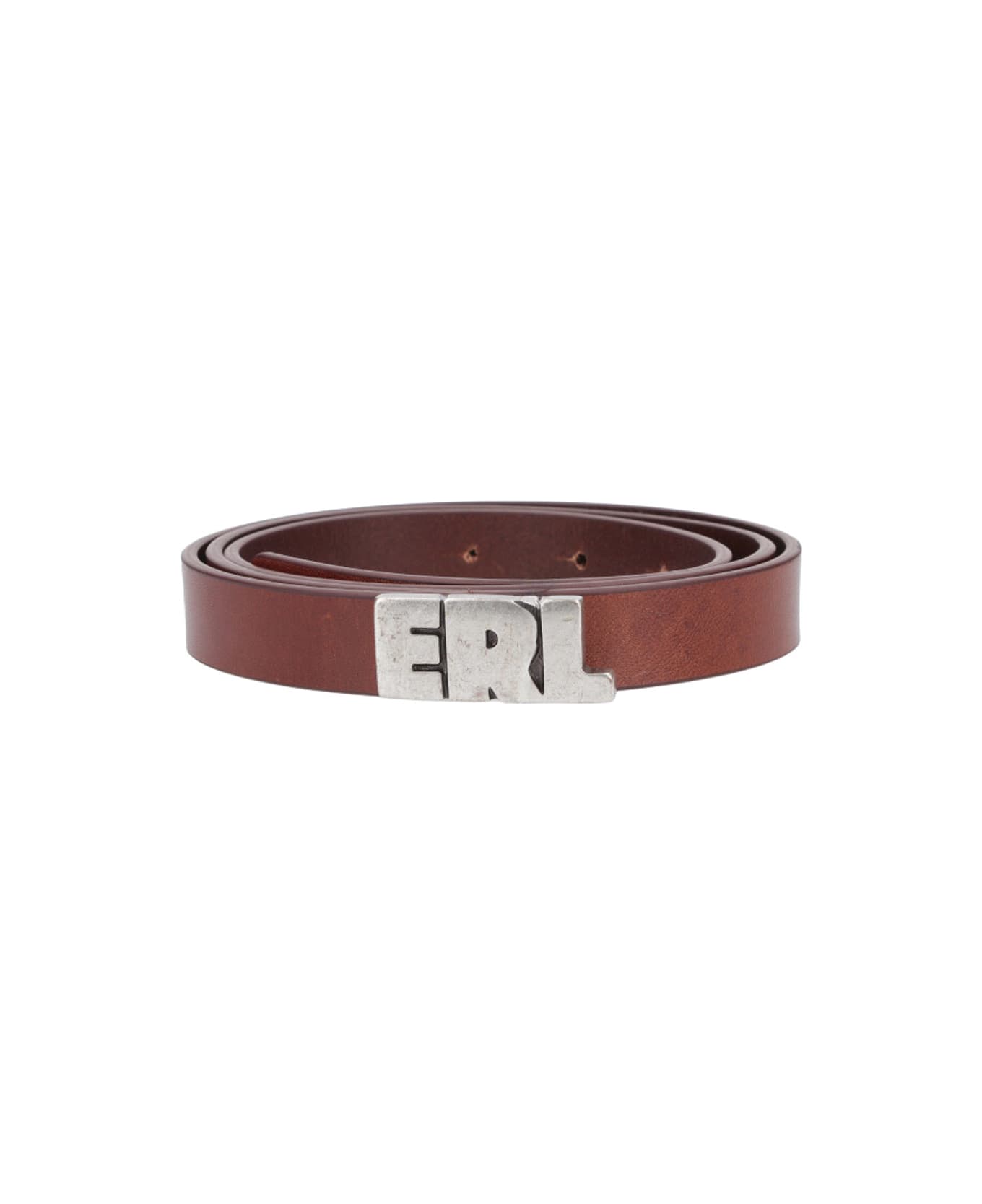 ERL logo belt, brown calf leather, silver metal buckle at the front, adjustable.