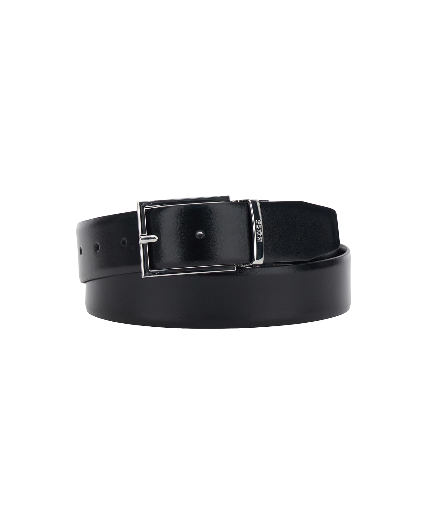 Belt Black Front buckle closure Reversible design Silver tone metalware Leather Height: 3,5 cm