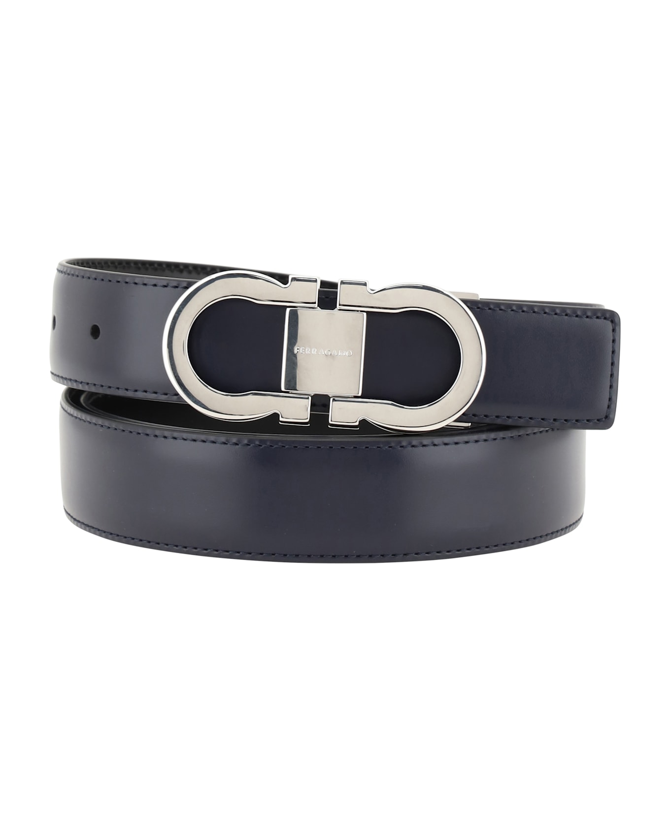 Leather reversible belt by ferragamo, double-face design, metal buckle with iconic gancini logo. Composition: 100% % Calf Leather Bos Taurus