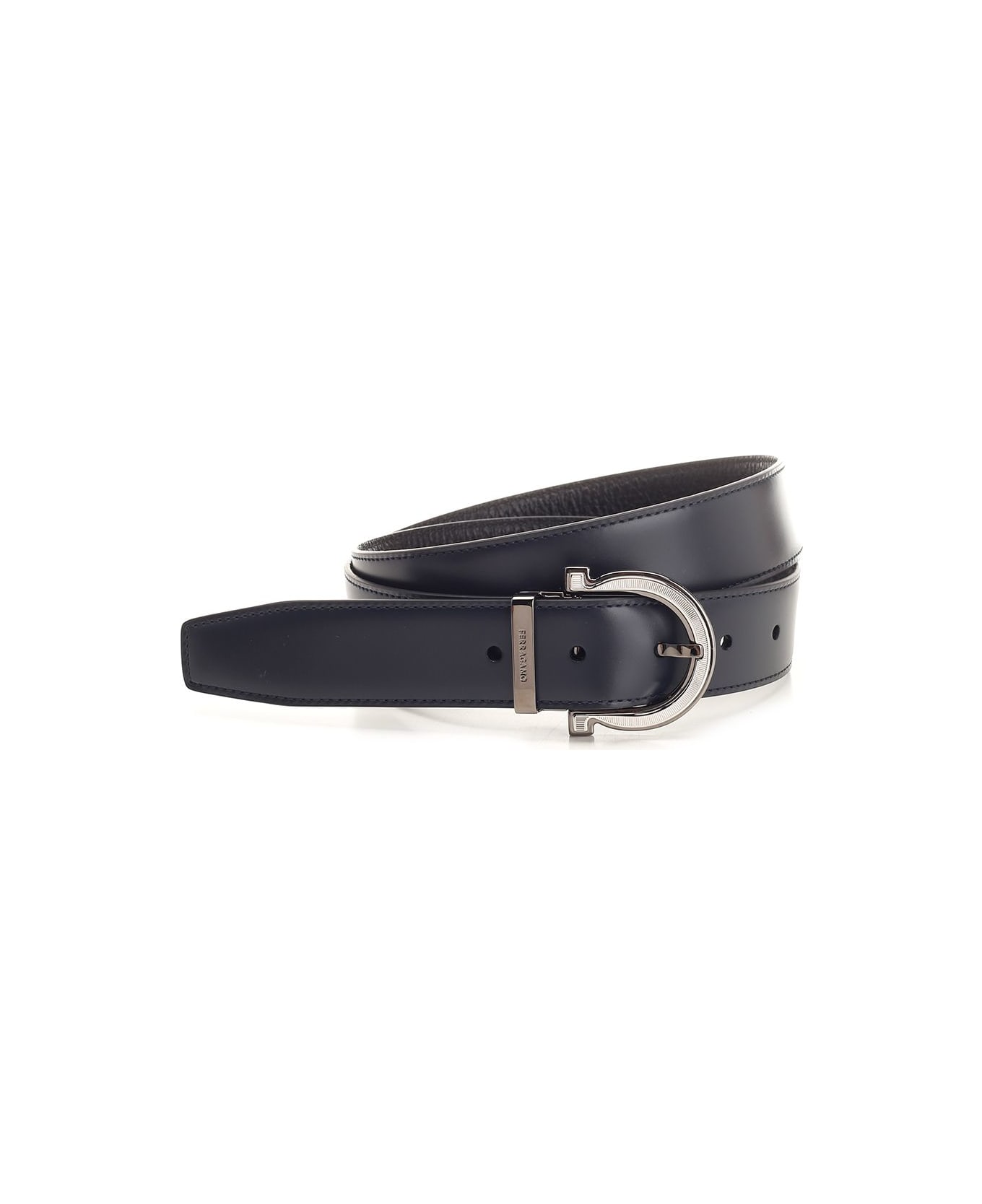 Blue Black Reversible Leather Belt with Gancini Buckle