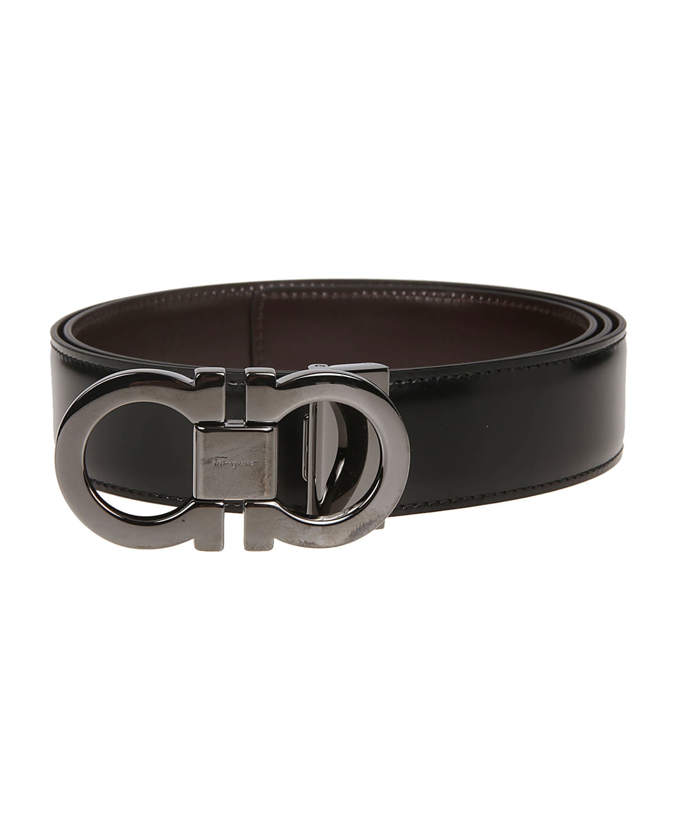 Reversible Gancini Belt from Salvatore Ferragamo: Black Reversible Gancini Belt with brand buckle and adjustable fit.