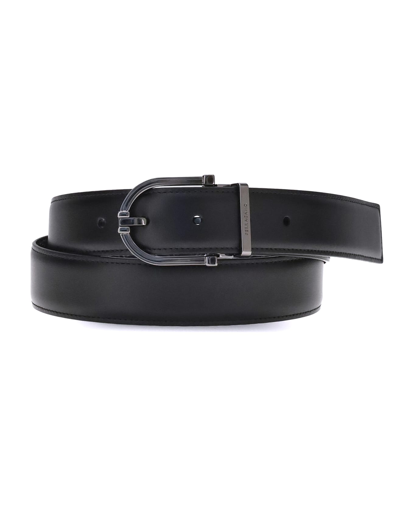 Ferragamo's reversible leather belt is a stylish and versatile accessory made from soft calfskin leather. its two-tone reversible design offers effortless versatility, allowing you to pair it with a variety of outfits. the geometric buckle with ruthenium finish is embellished with a signature engraved on the loop, adding a refined touch. with its adjustable length, you can customize the fit and style to your liking.