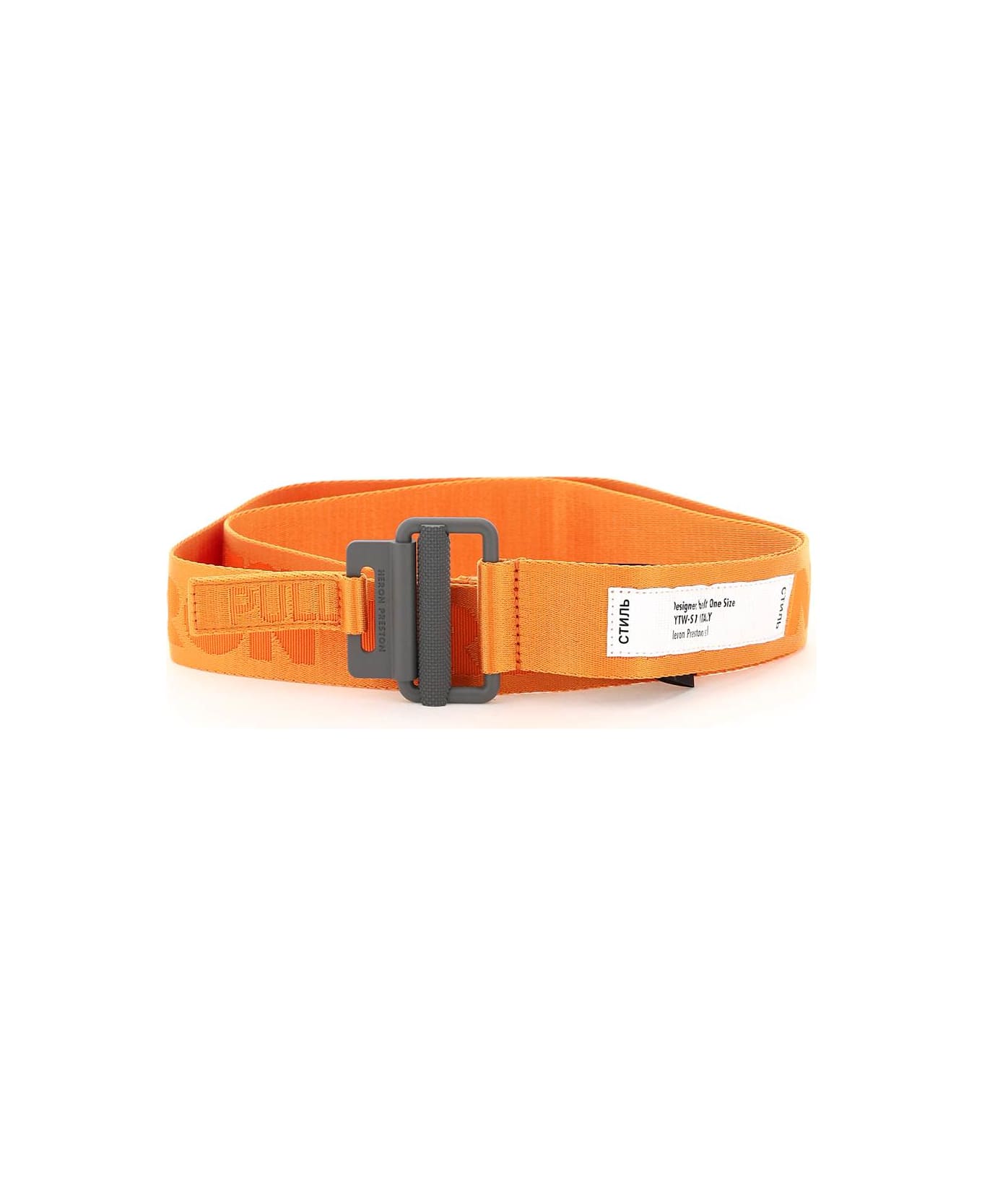 Heron Preston tape belt in technical fabric with all-over jacquard logo. Sliding buckle in contrast painted metal with PULL tab detail and logo patch. Composition: 60% poliestere, 40% poliammide