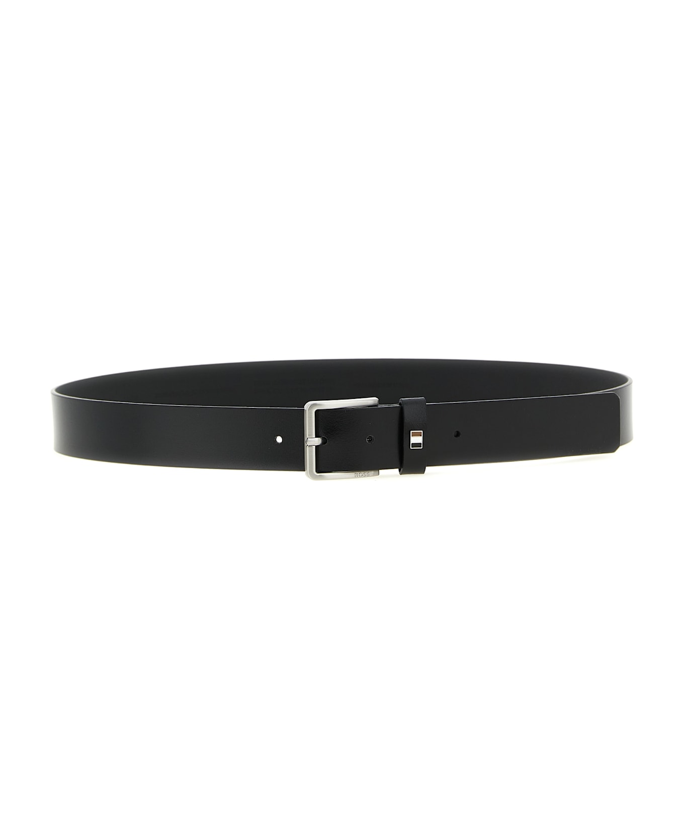 'Ther-Flag-E' rich Italian leather belt with smooth finish, metal buckle, belt loop with metallic signature stripe detail.