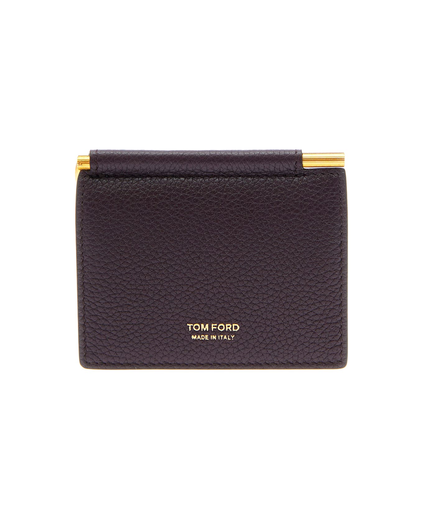 Bi-fold wallet Bordeaux Embossed logo lettering on the front Eight card slots on the inside Gold tone money clip on the side Embossed logo lettering on the inside Gold tone metalware Grained leather Dimensions: 11x9 cm