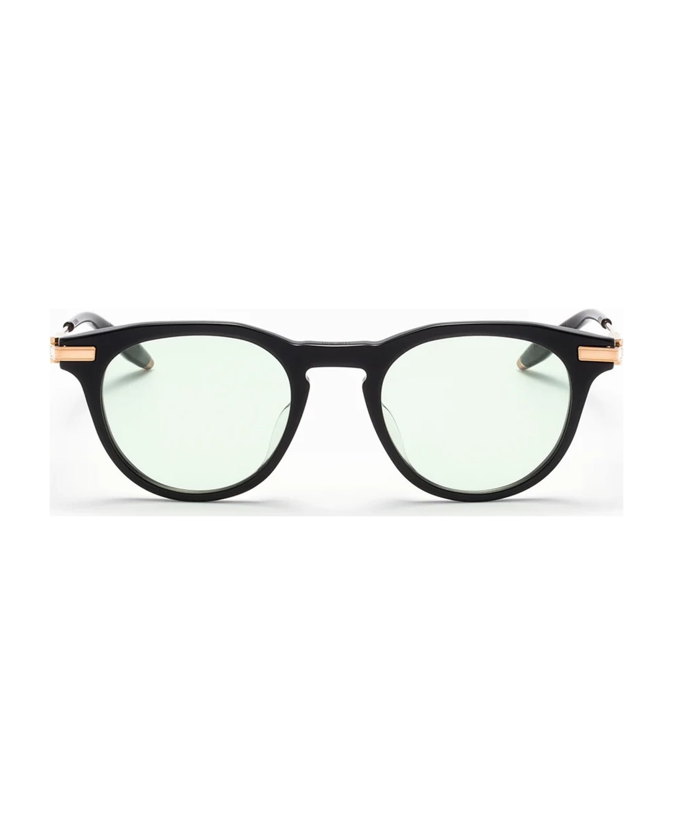 Akoni's Gemini - Dark Crystal Grey / Brushed White Gold eyeglasses are a modern update of a classic with intellectual allure. Their round-lens shape is the perfect style for people with square or angular face shapes. They feature a custom titanium temple with knurled round component, threaded tube screw system, and Japanese acetate temples with branded titanium temple tips.