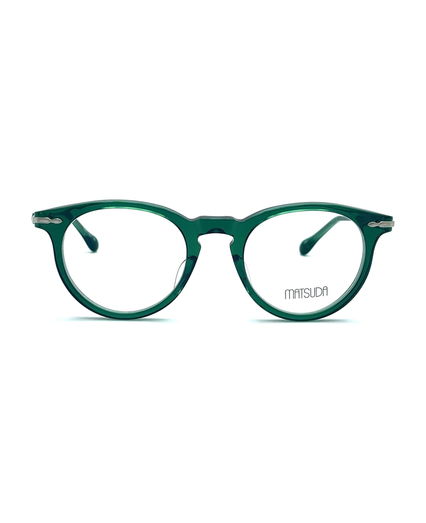 Matsuda M2058 - BOTTLE GREEN RX (M2058. RX. BGN. 48) are classic pantos eyeglasses made in Japan. They feature bottle green Japanese hand carved acetate frame, precious metal finishing, and keyhole bridge. Made in Japan - Color: green - Material: acetate - Lens: clear - Shape: pantos - Size: eye 48mm / bridge 21mm / temple 145mm
