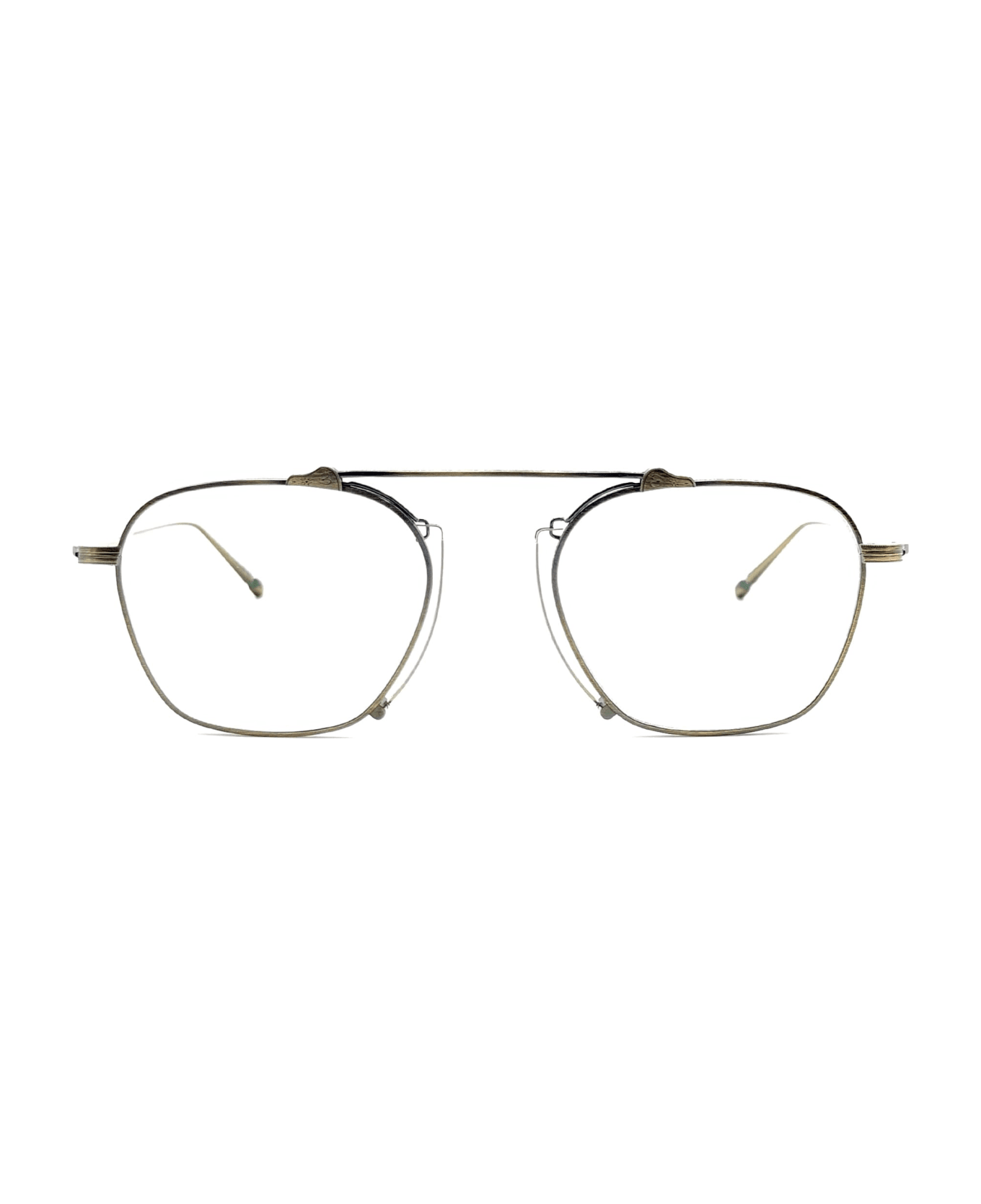 Matsuda M3129 - ANTIQUE GOLD RX (M3129. RX. AG. 51) are squared pilot eyeglasses made in Japan. They feature antique gold titanium structure, detailed engraving decoration, and custom ''pince-nez'' nose pads. Made in Japan - Color: gold - Material: titanium - Lens: clear - Shape: squared - Size: eye 51mm / bridge 20mm / temple 145mm