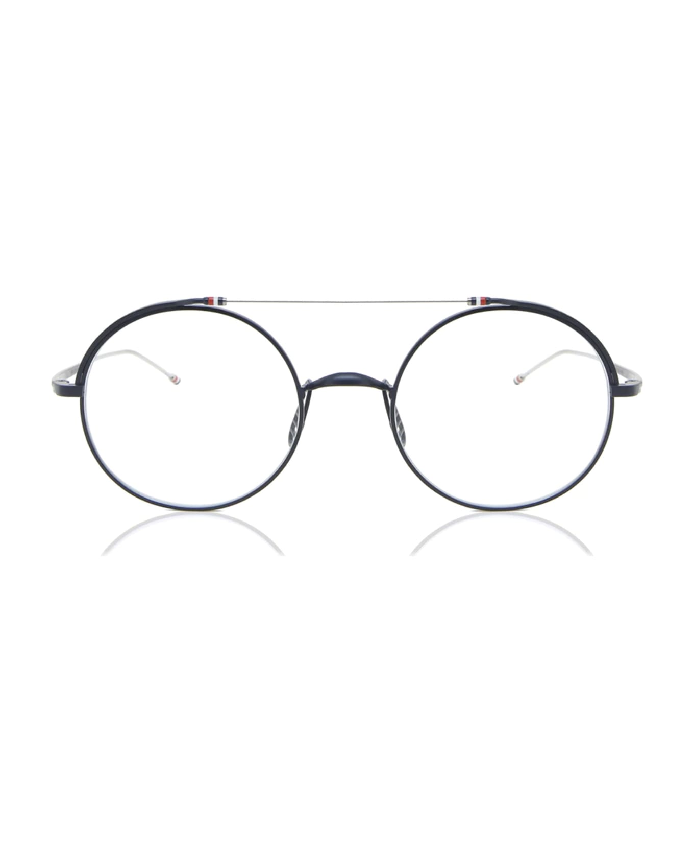 Thom Browne TBX 910 - NAVY / SILVER RX (TBX910-41-03) are round eyeglasses made in Japan. They feature a navy blue and silver titanium structure with thin top bar with Thom Brown signature touch. Made in Japan - Color: blue navy - Material: titanium - Lens: clear - Shape: round - Size: eye 41mm / bridge 22mm / temple 140mm