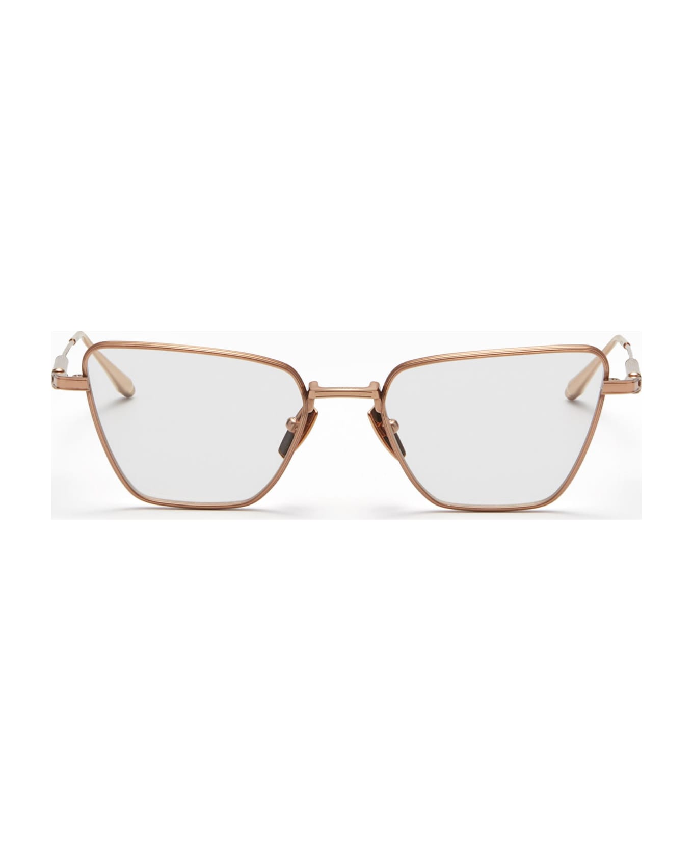 Akoni VEGA - ROSE GOLD / BRUSHED WHITE GOLD RX (AKX-306C-54) are 80s minimalist butterfly/cat-eye made in Japan, inspired by the impressive style of Maryl Streep. They feature lightweight rose gold Japanese titanium structure, elegant tactile line decorations on the rims, iconic knurling embellishments on the temple and front.
