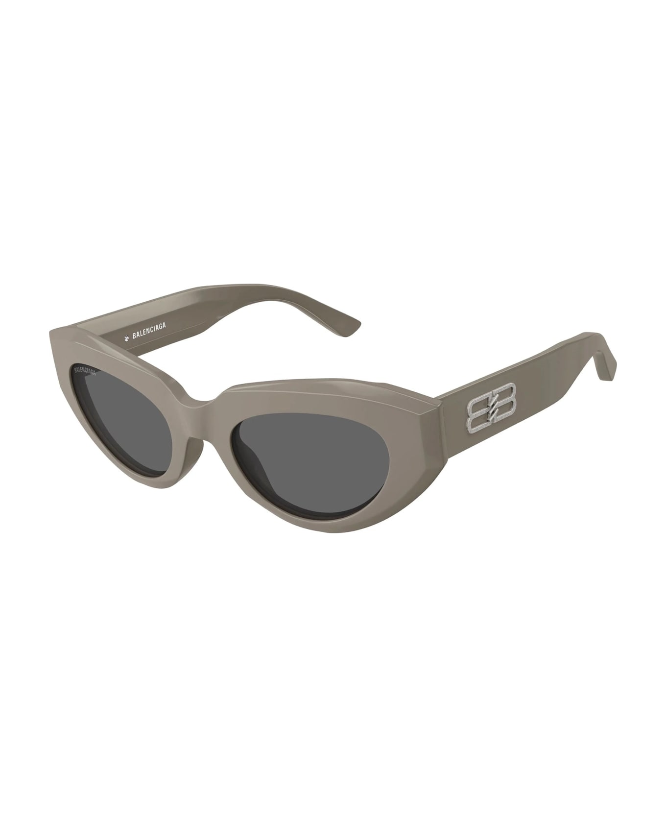 Balenciaga's Rive Gauche sunglasses feature an acetate frame with a carbon fiber effect, cat-eye shape, metal BB logo on temples, and 100% UVA/UVB protection.