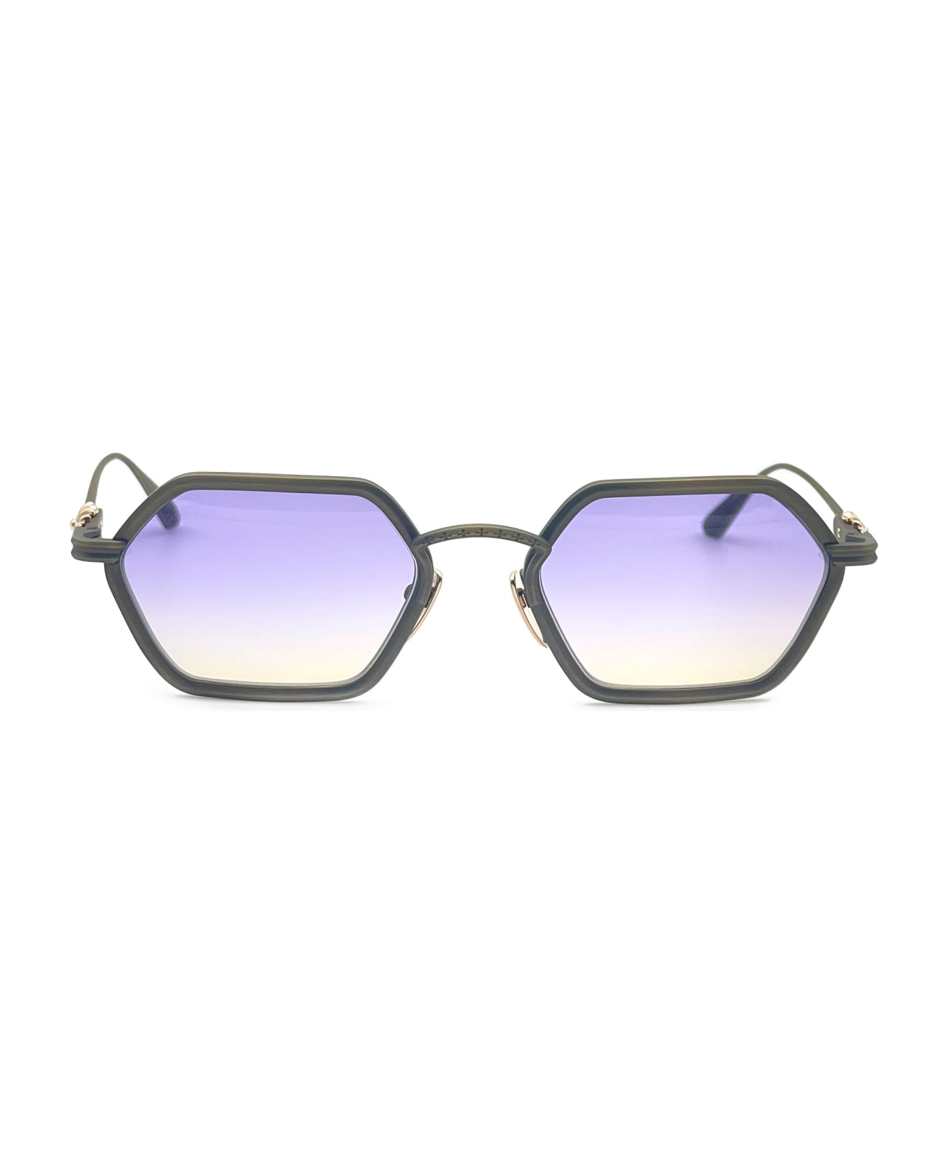 Chrome Hearts DATASS - SAND (32420279123GE54G60) are hexagonal sunglasses, part of Chrome Hearts's exclusive luxury eyewear collection. They feature sand brown titanium frame with decorated nose bridge, titanium temples with Chrome Hearts signature gold-plated 925 silver emblem decorations, and gradient purple lens with 100% UV protection. /p>